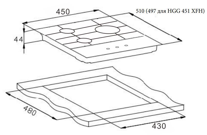 Размеры ниши для встраивания (ШхГ): 430 х 480 мм