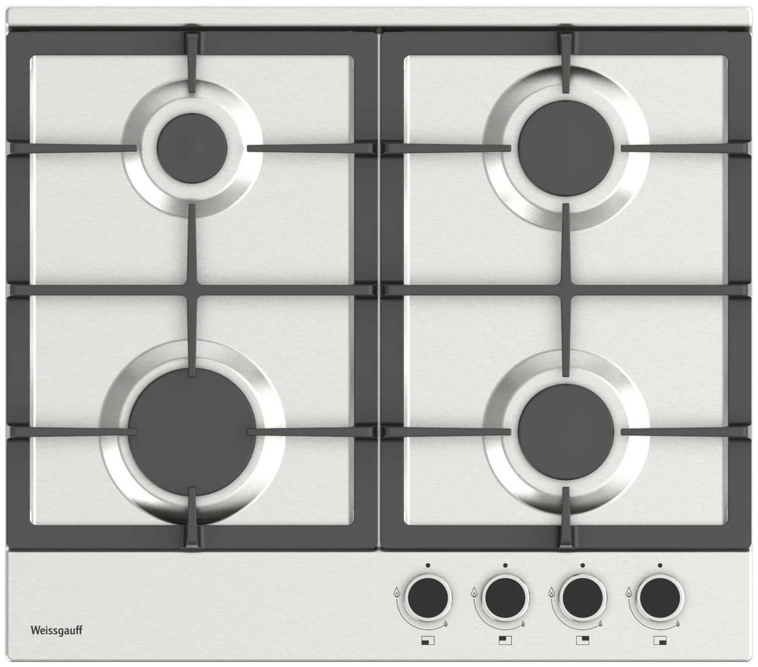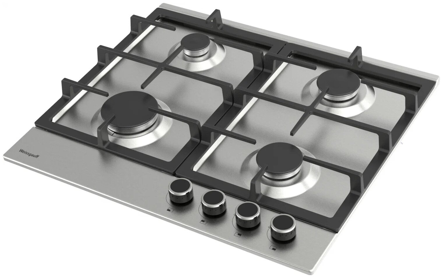поворотные рукоятки Hi-Tech в черном цвете с серебристым кольцом; материал панели конфорок: эмаль