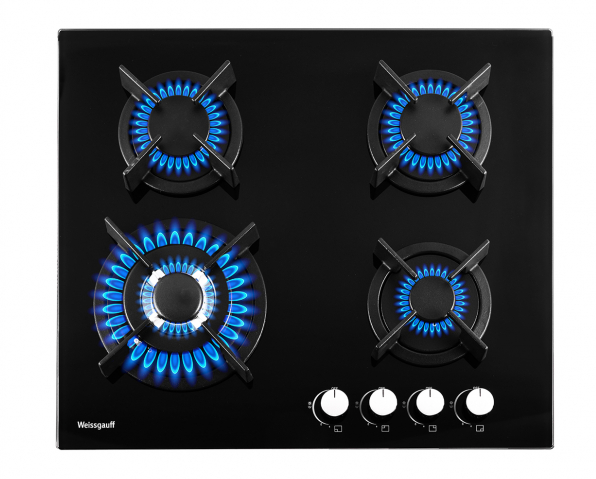 Встраиваемая независимая газовая панель Weissgauff шириной 60 см, исполненная в закалённом чёрном стекле - это стильное и компактное решение для вашей кухни!