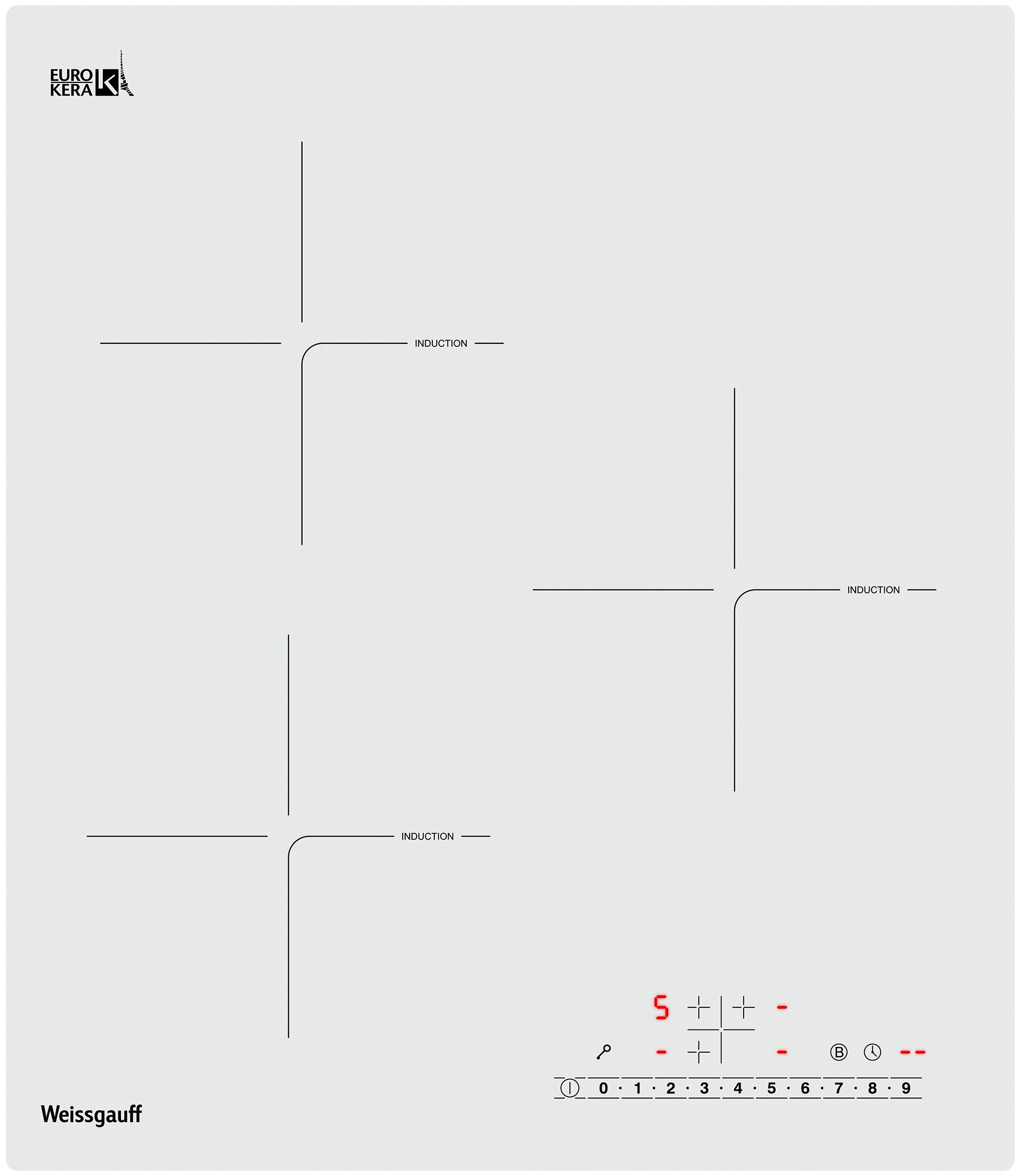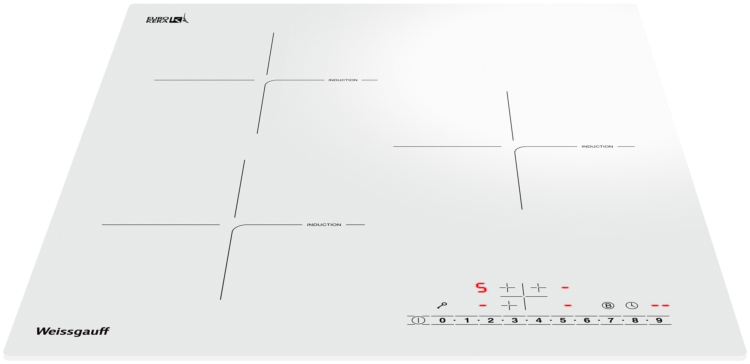 защитное отключение конфорок, кнопка блокировки панели, индикатор остаточного тепла