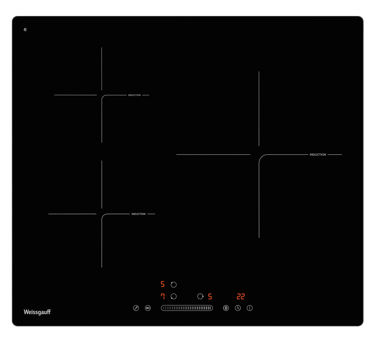 Мощность конфорок: 1 х Ø160 мм, 1300 Вт (Boost: 1500 Вт), 1 х Ø180 мм, 1900 Вт (Boost: 2200 Вт), 1 х Ø280 мм, 2300 Вт (Boost: 3000 Вт)