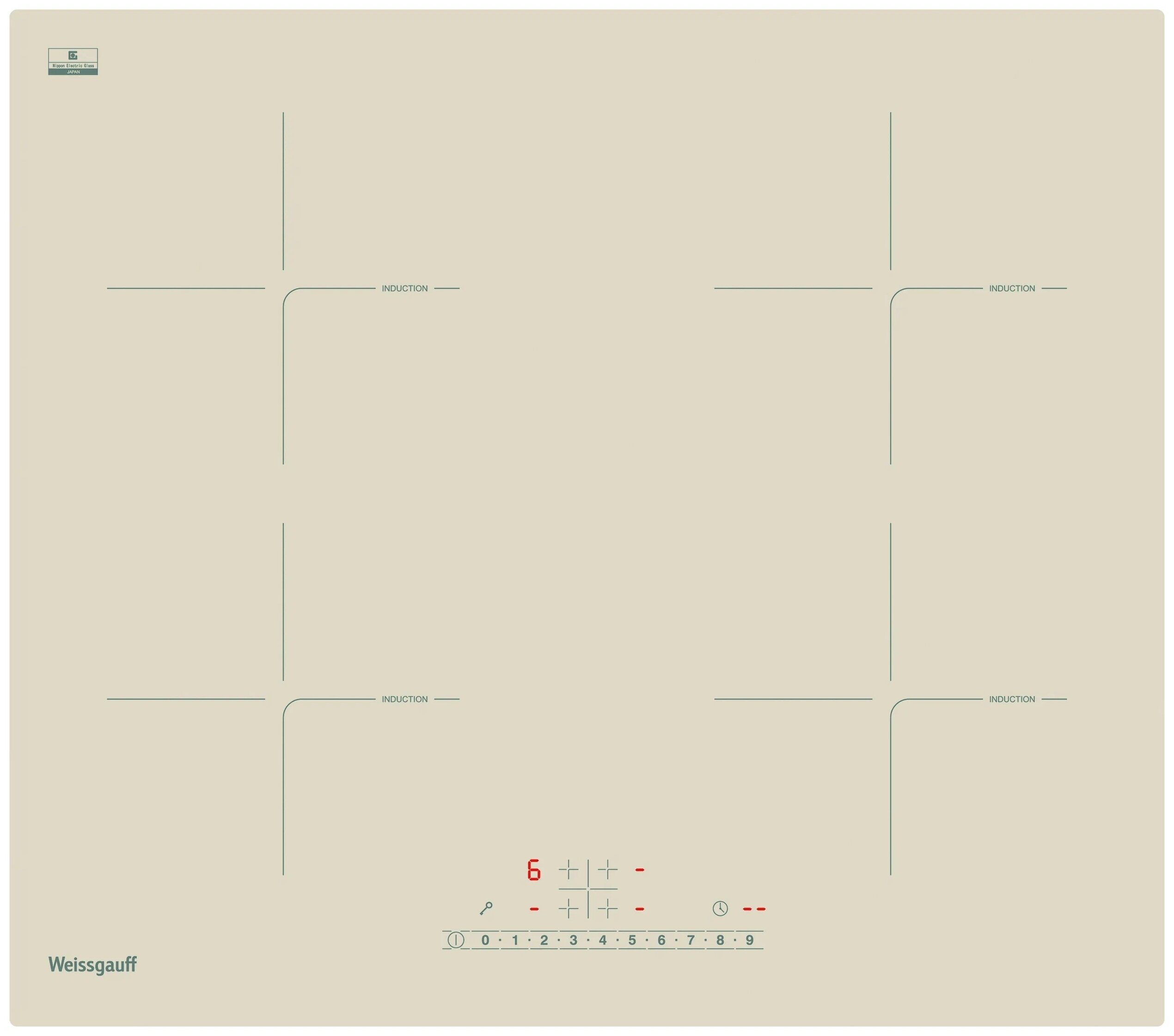 защитное отключение конфорок, кнопка блокировки панели, индикатор остаточного тепла
