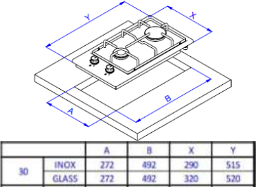Мощность конфорок: 1*2,9/1*0,9 кВт