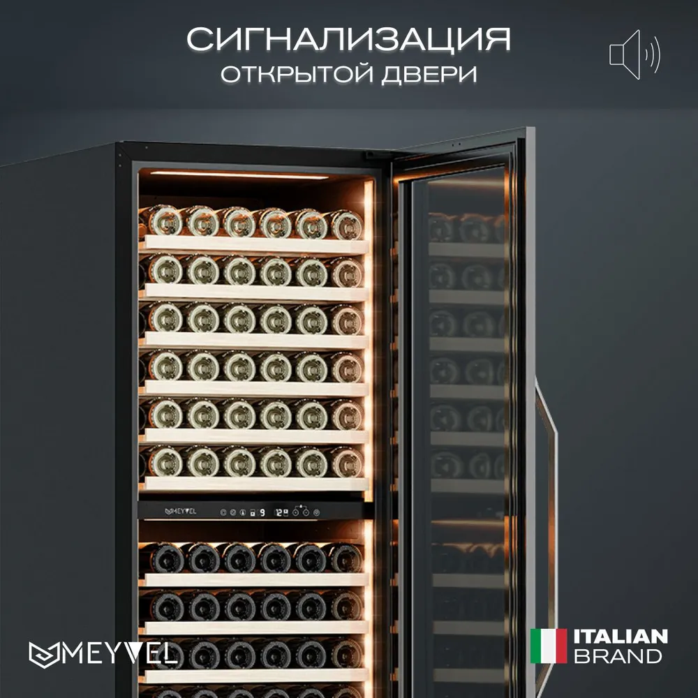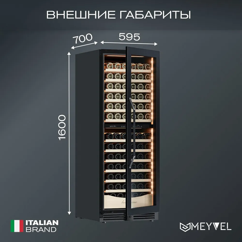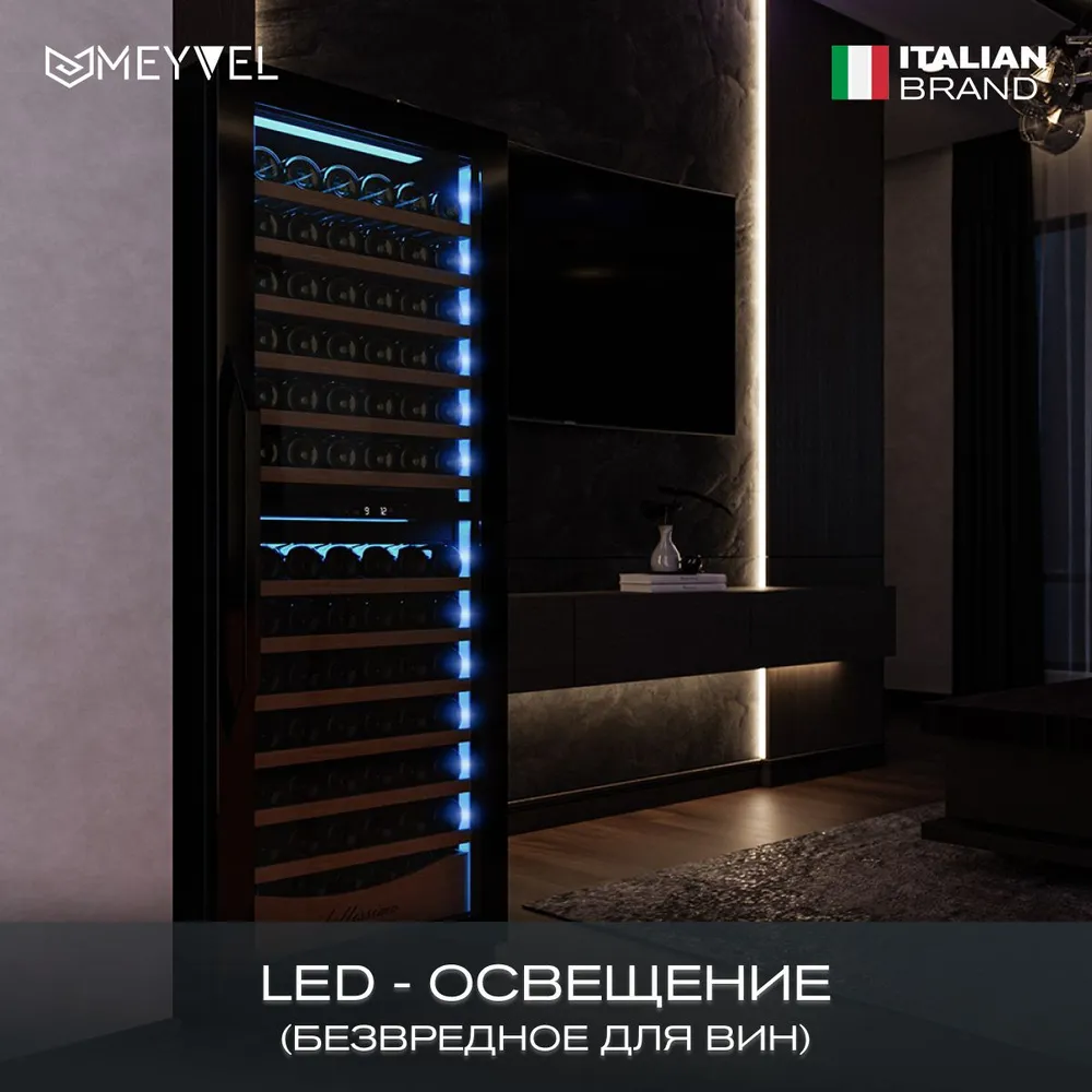 Характеристики: Винный холодильный шкаф Meyvel MV141PRO-KBT2 компрессорный (встраиваемый / отдельностоящий холодильник для вина на 141 бутылку)