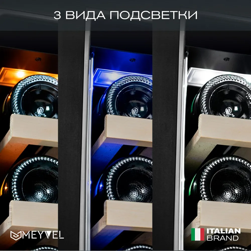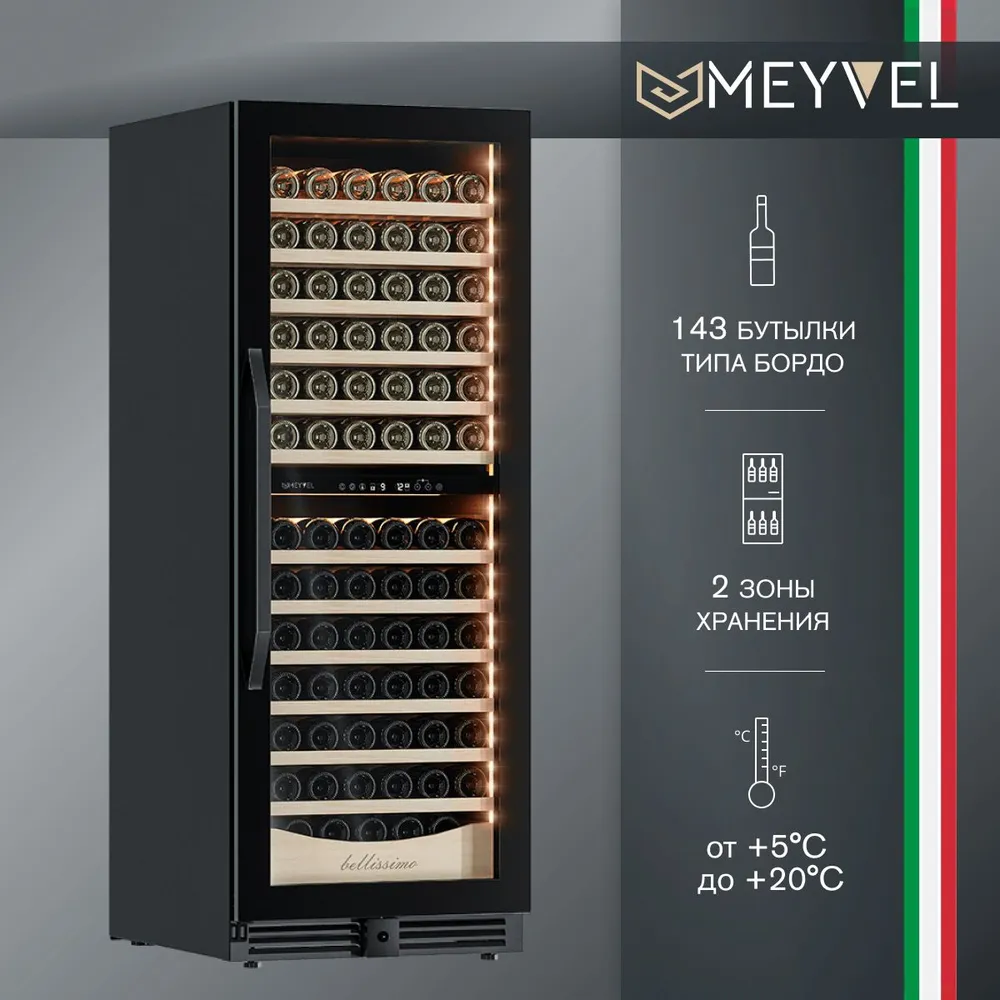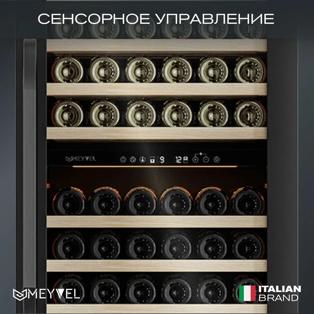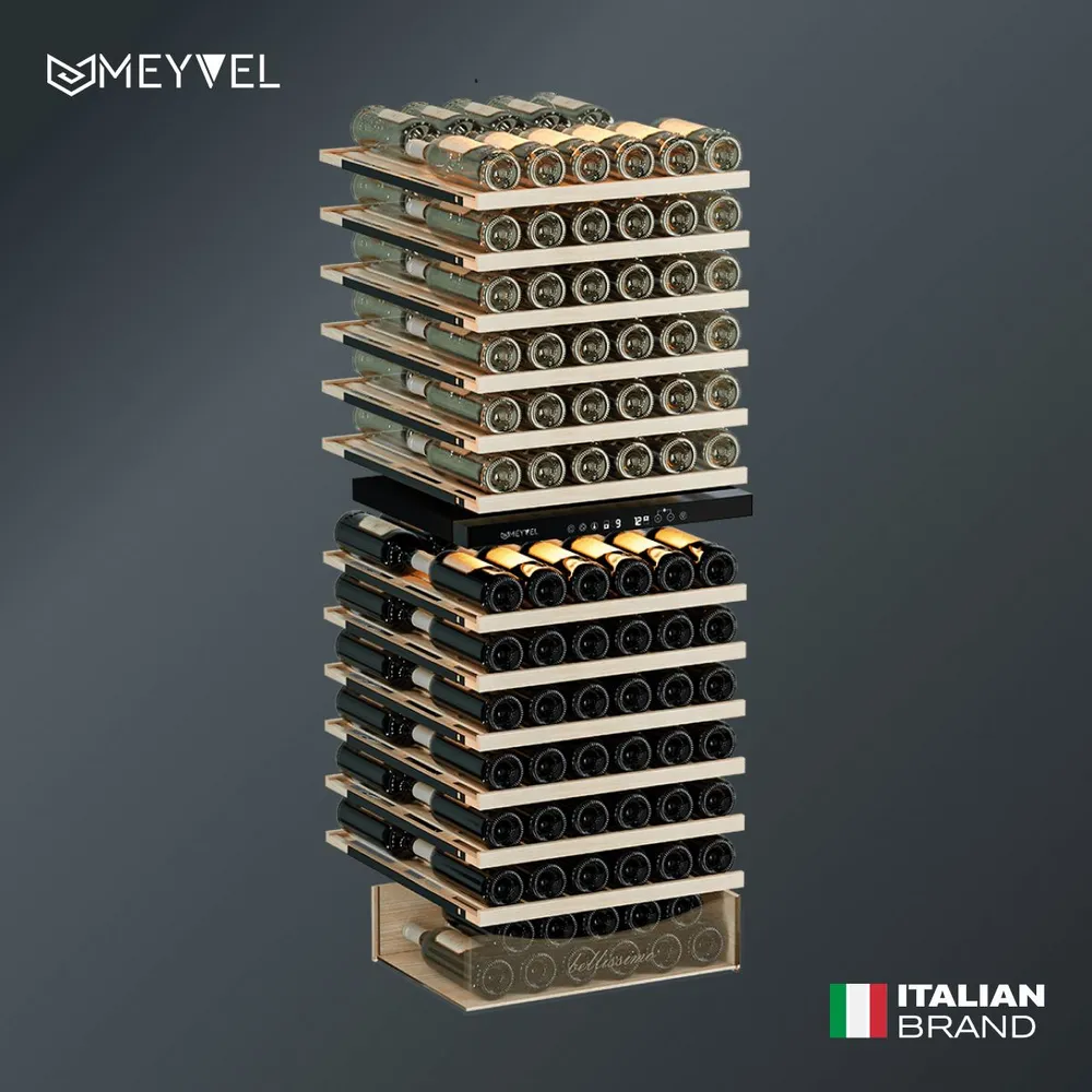 Характеристики: Винный холодильный шкаф Meyvel MV141PRO-KBT2 компрессорный (встраиваемый / отдельностоящий холодильник для вина на 141 бутылку)