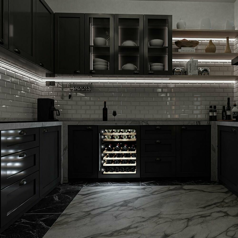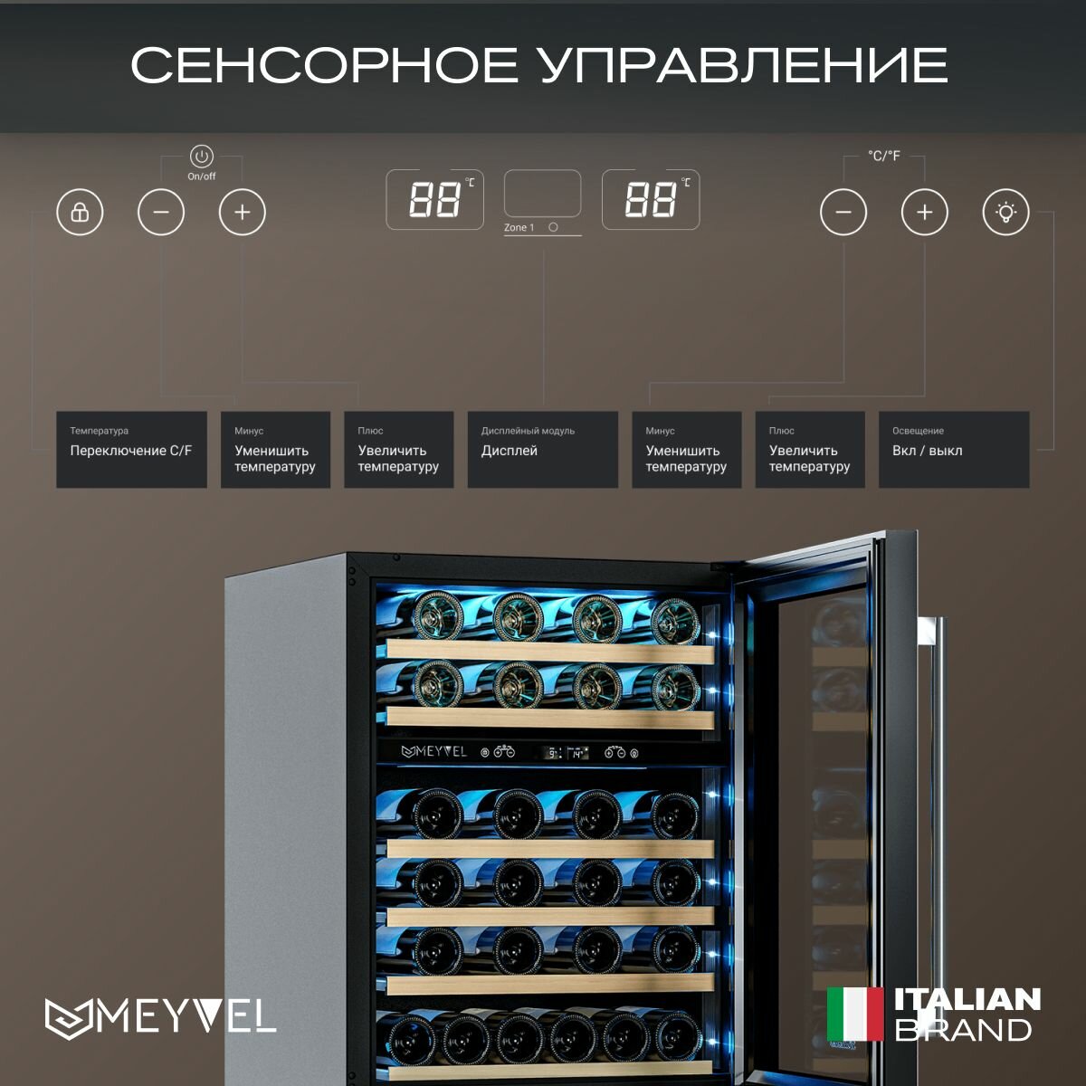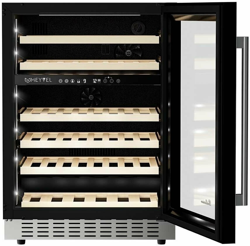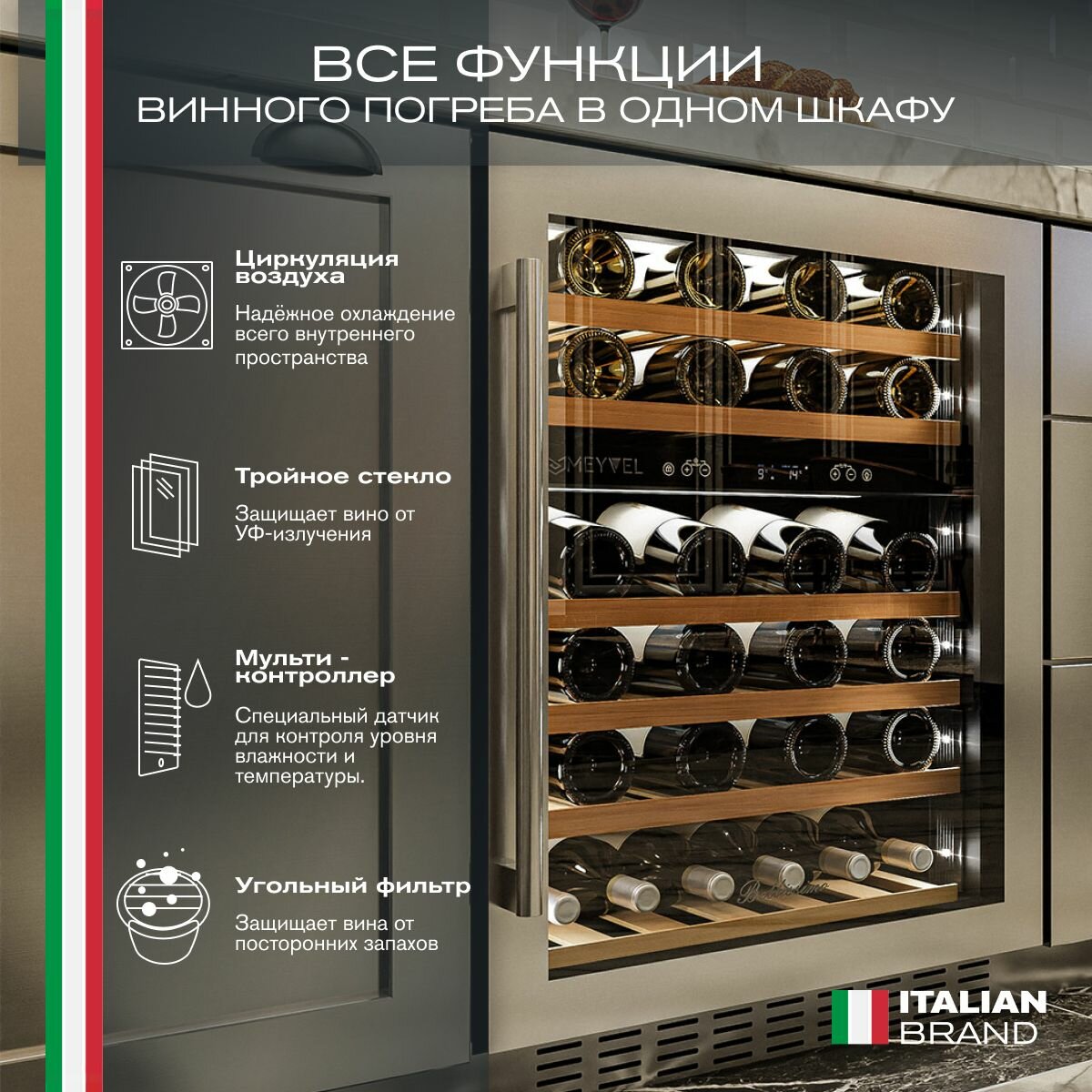 рамка двери - сталь, датчик закрытия, зимний режим, демонстрационное освещение, блокировка панели управления, сигнализация отклонения температуры, режим эко-демо, память настроек, LED освещение (белое)