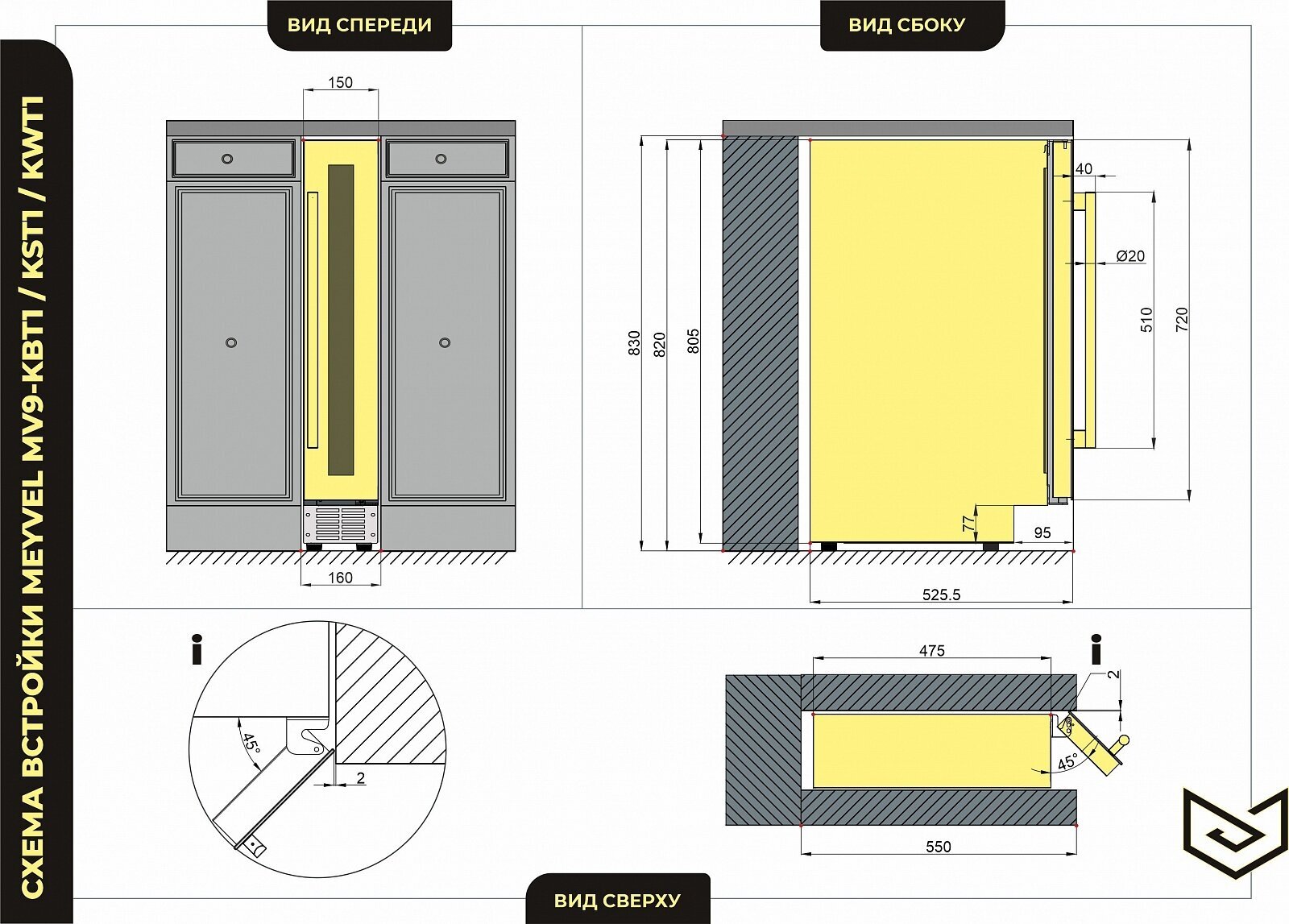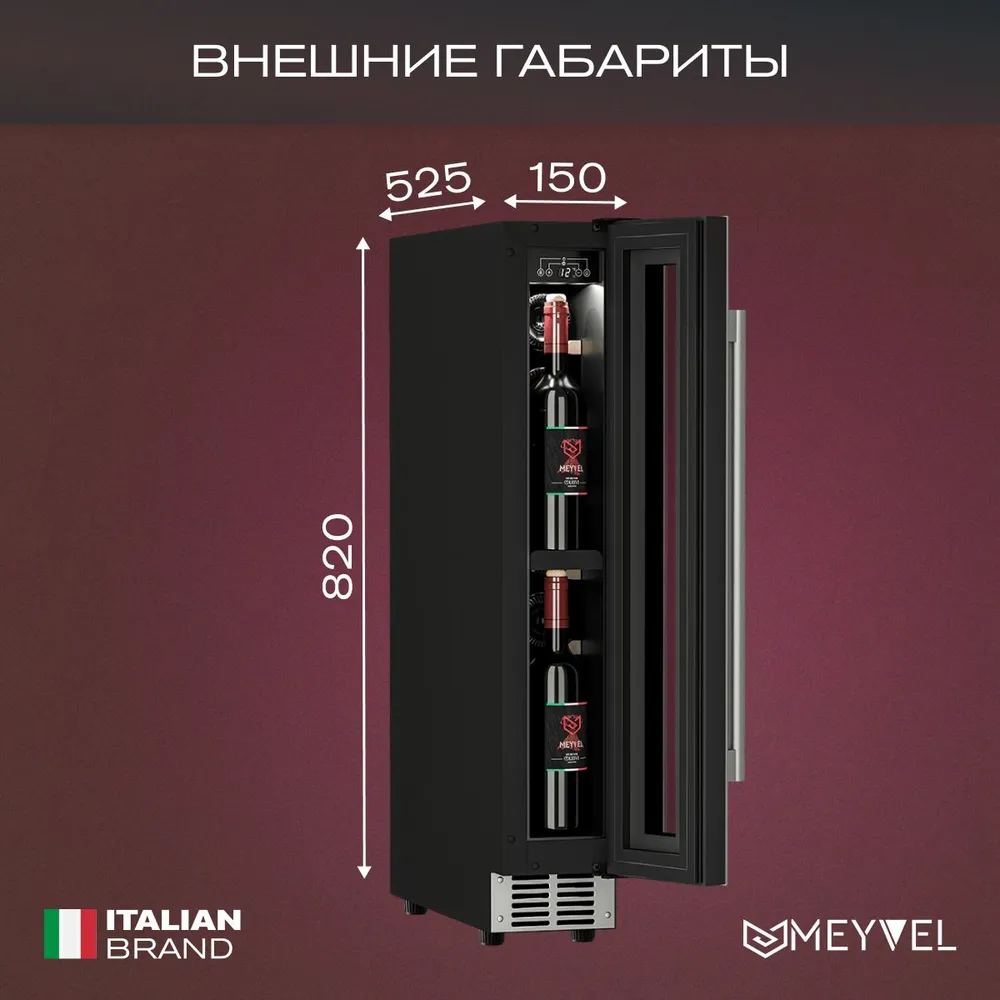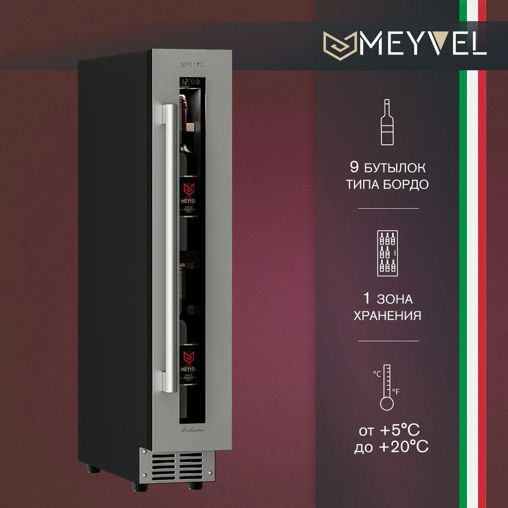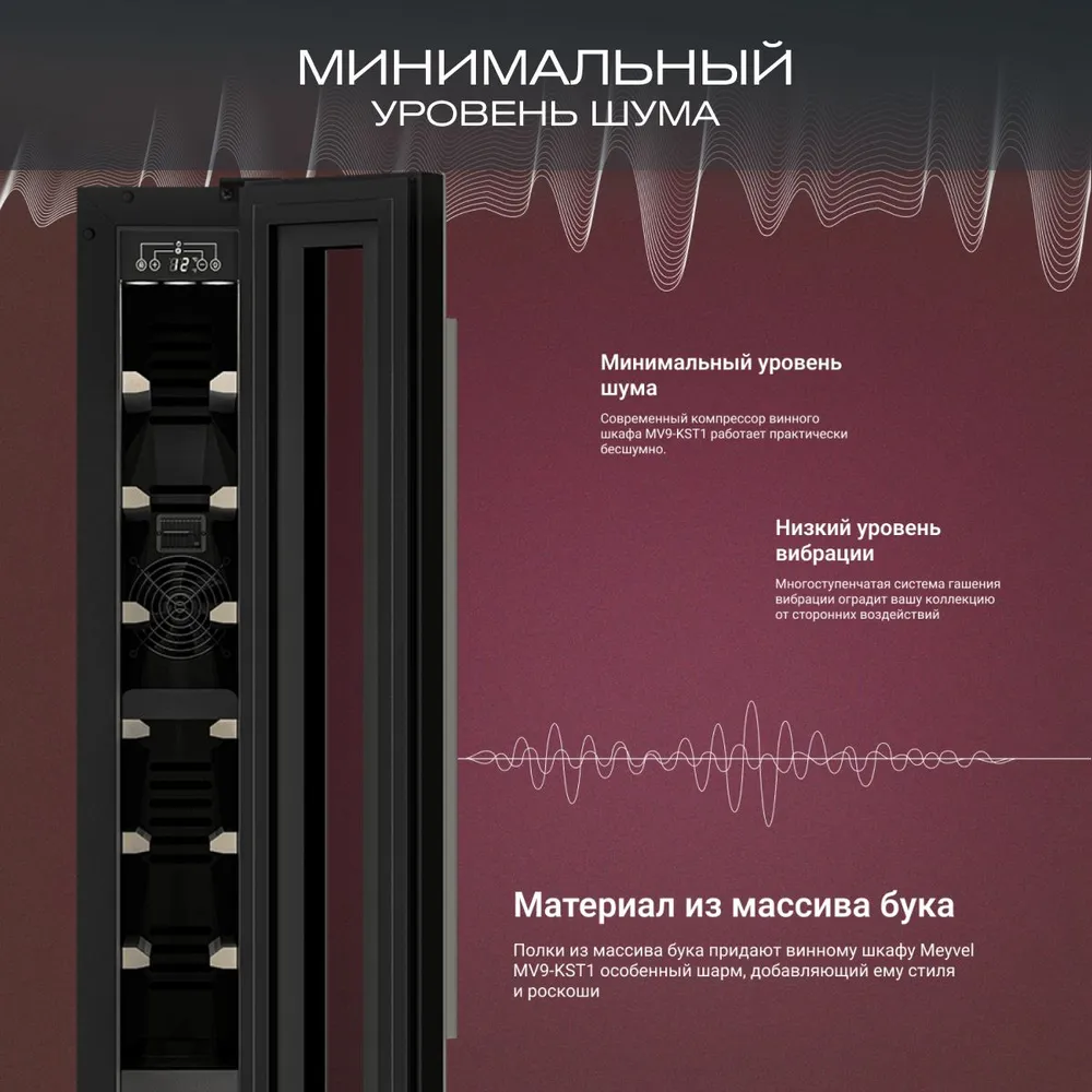 Характеристики: Винный холодильный шкаф Meyvel MV9-KST1 компрессорный (встраиваемый / отдельностоящий холодильник для вина на 9 бутылок)