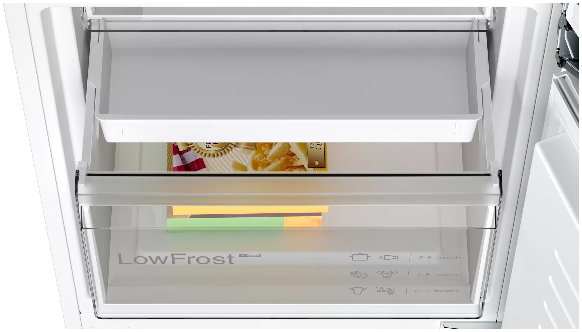 Выдвижная полка из ударопрочного стекла обеспечивает отличный обзор содержимого холодильника как вблизи, так и в глубине.