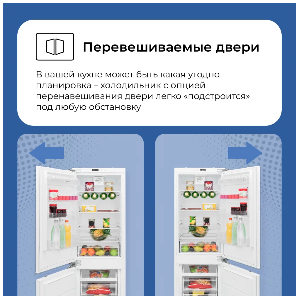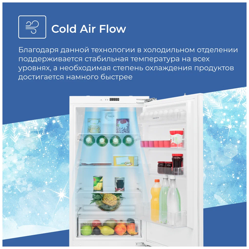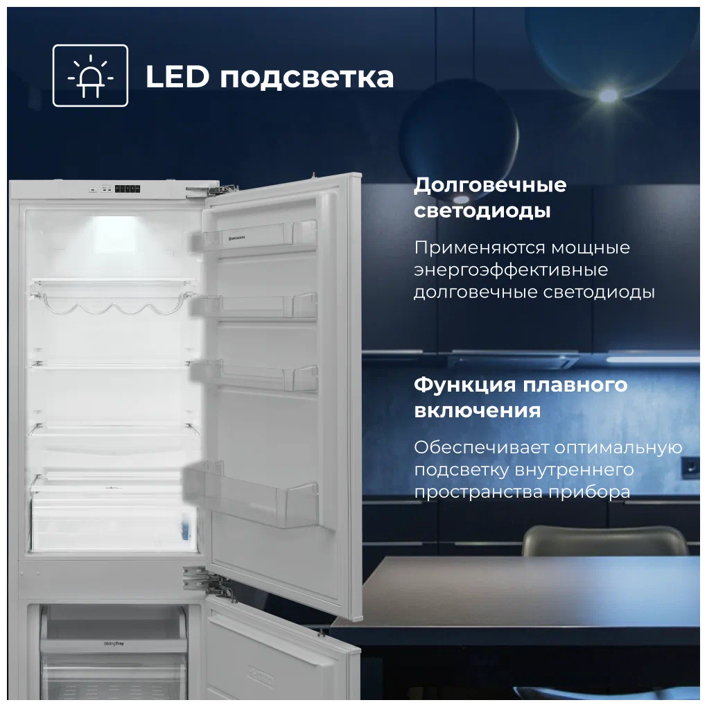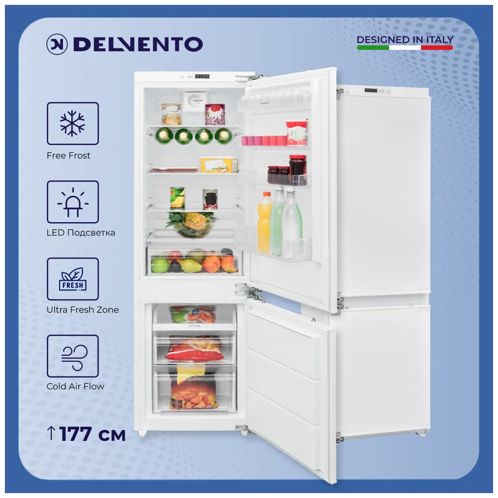 Встраиваемый холодильник DELVENTO с нижней морозильной камерой.