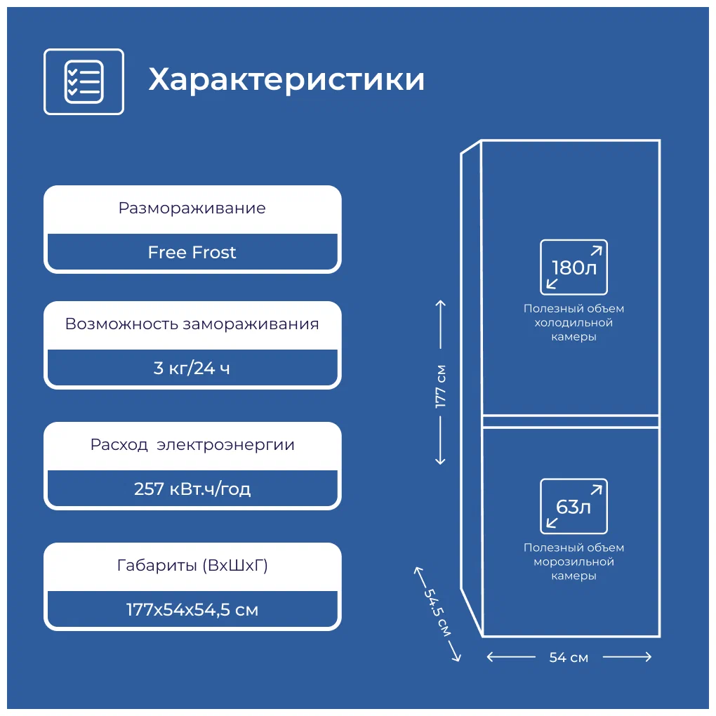 Размеры ШхГхВ (см) : 54х54,5х177