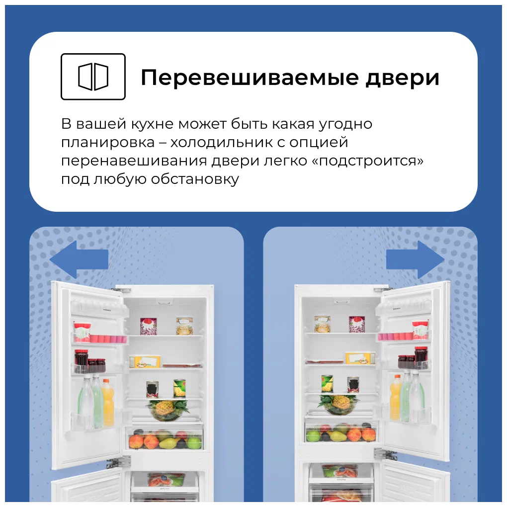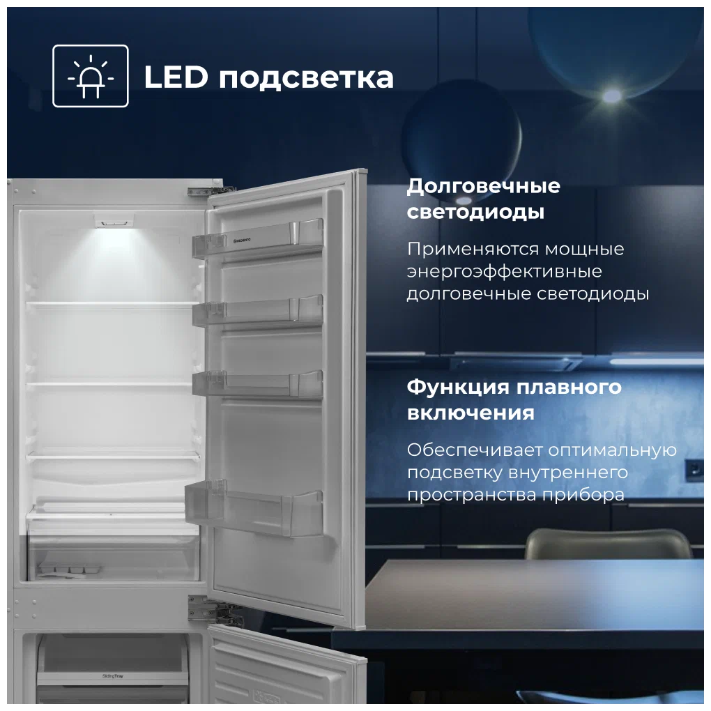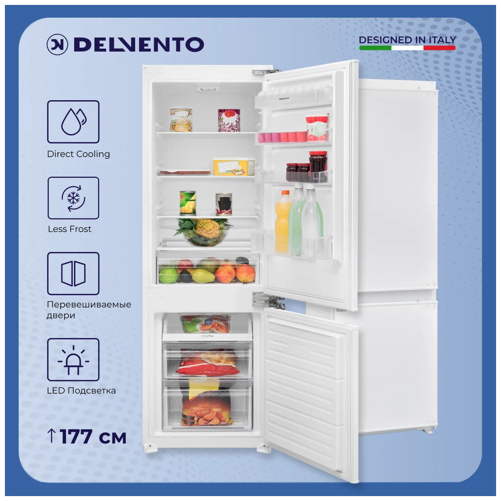 Встраиваемый холодильник DELVENTO с нижней морозильной камерой.