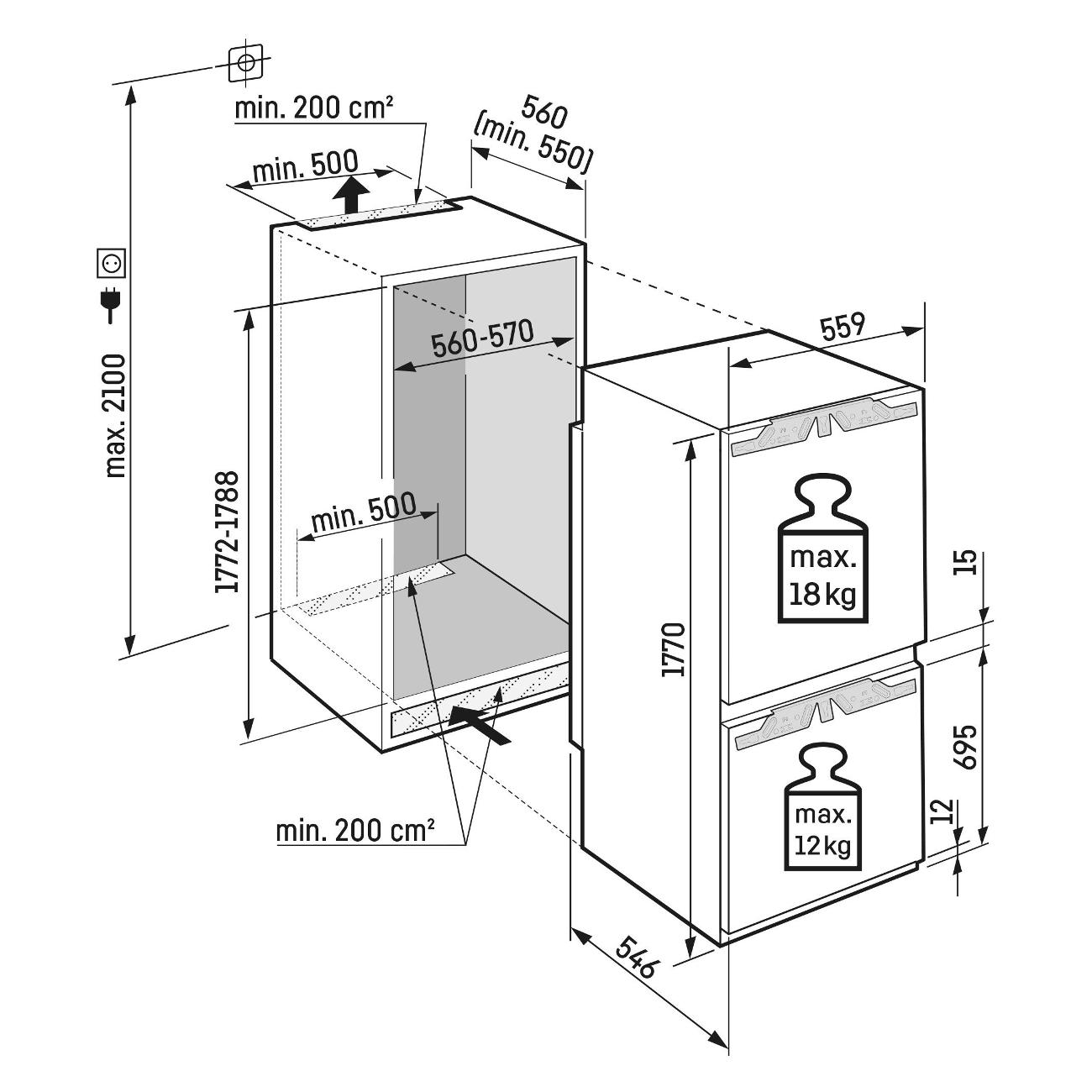 Расположение морозильной камеры