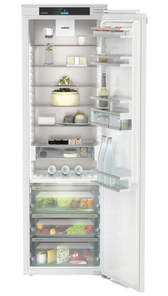 Встраиваемый холодильник Liebherr IRBCI 5150 обладает стильным и функциональным дизайном. Корпус изготовлен из стали, что обеспечивает его прочность и долговечность. Дверь упора располагается справа, но при необходимости ее можно перевесить. Особенностью является доводчик двери SoftSystem, который обеспечивает плавное и тихое закрытие двери. Управление холодильником осуществляется с помощью сенсорного Touch&Swipe дисплея. Встроенная индикация температуры холодильной камеры позволяет легко контролировать и поддерживать нужную температуру. Инновационная система размораживания автоматически контролирует процесс, обеспечивая оптимальные условия хранения продуктов. Освещение холодильной камеры выполнено светодиодами, что обеспечивает равномерное и яркое освещение. Объем холодильной камеры составляет 296 литров, что позволяет вместить большое количество продуктов. Полки из закаленного стекла не только прочны и надежны, но и легко очищаются. Холодильник оборудован различными режимами работы, включая EnergySaver, NightMode, SabbathMode, PartyMode и HolidayMode, что позволяет оптимально использовать его в различных условиях.