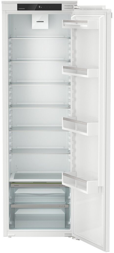Встраиваемый холодильник Liebherr IRe 5100 — удобная и практичная однокамерная модель с жестким креплением фасадов Door-on-Door, которое не только обеспечивает идеальную интеграцию в кухонный гарнитур, но и не допускает перекашивания мебельных панелей. Электронное сенсорное управление дополнено дисплеем, который облегчает выбор необходимых настроек, а кроме того используя технологию SmartDevice-Box можно подключить прибор к Wi-Fi и управлять им из любой точки мира.