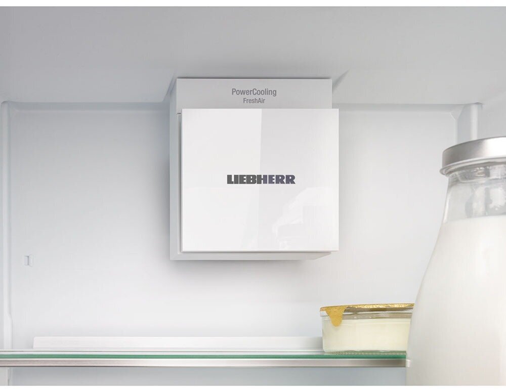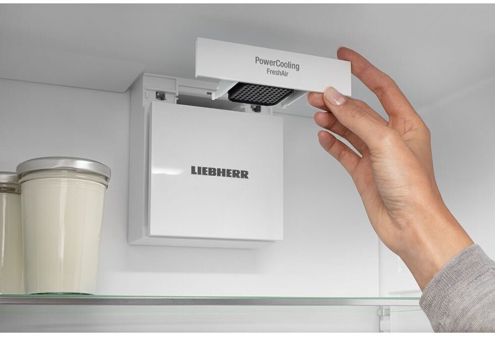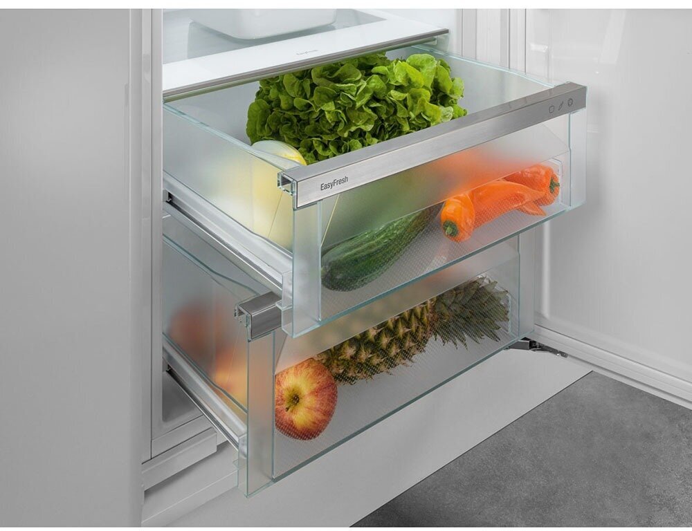 Встраиваемый холодильник Либхер IRe 5100 имеет циркуляционное охлаждение, благодаря чему во всей камере поддерживается одинаковый уровень холода, независимо от высоты расположения полок. При этом свежесть воздуха обеспечивает угольный фильтр, абсорбирующий все неприятные запахи. Дополнительно предусмотрены герметичные контейнеры зоны свежести EasyFresh, в которых овощи и фрукты дольше сохраняют свои полезные свойства, а также не заветриваются и не портятся. Ящики оснащены частично выдвигаемыми телескопическими направляющюими, что делает их использование более комфортным.