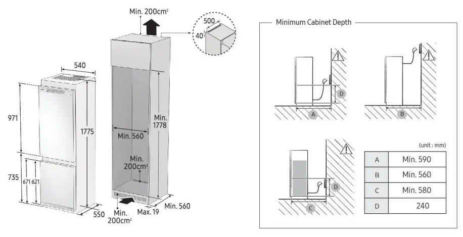 размеры для встраивания (ВхШхГ) 177,8x56,0x56,0 см