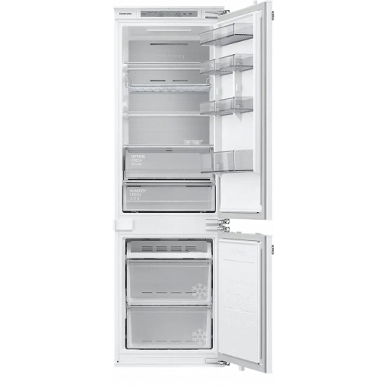 Встраиваемый холодильник Samsung BRB 26715EWW — модель с двумя камерами общим полезным объемом 267 л, относящаяся к климатическому классу T, SN. Основное отделение (193 л) оборудовано четырьмя полками из закаленного стекла и шестью вместительными пластиковыми карманами на двери. Зона свежести объемом 20 л поддерживает оптимальный уровня влажности для долгого хранения фруктов и овощей. Встроенное светодиодное освещение позволяет хорошо ориентироваться в пространстве в любое время суток.