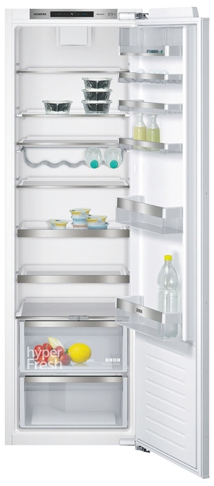 Стильный и практичный холодильник Siemens KI81RAD20R оснащен угольным фильтром AirFreshFilter, который устраняет неприятные запахи и бактерии. Конструкция данной модели предусматривает отделение для овощей и фруктов HydroFreshBox, которое позволяет установить оптимальный уровень влажности для сохранения свежести и полезных свойств продуктов. Режим «Суперохлаждение» гарантирует постоянную температуру в холодильной камере независимо от загрузки, что повышает комфорт использования.
