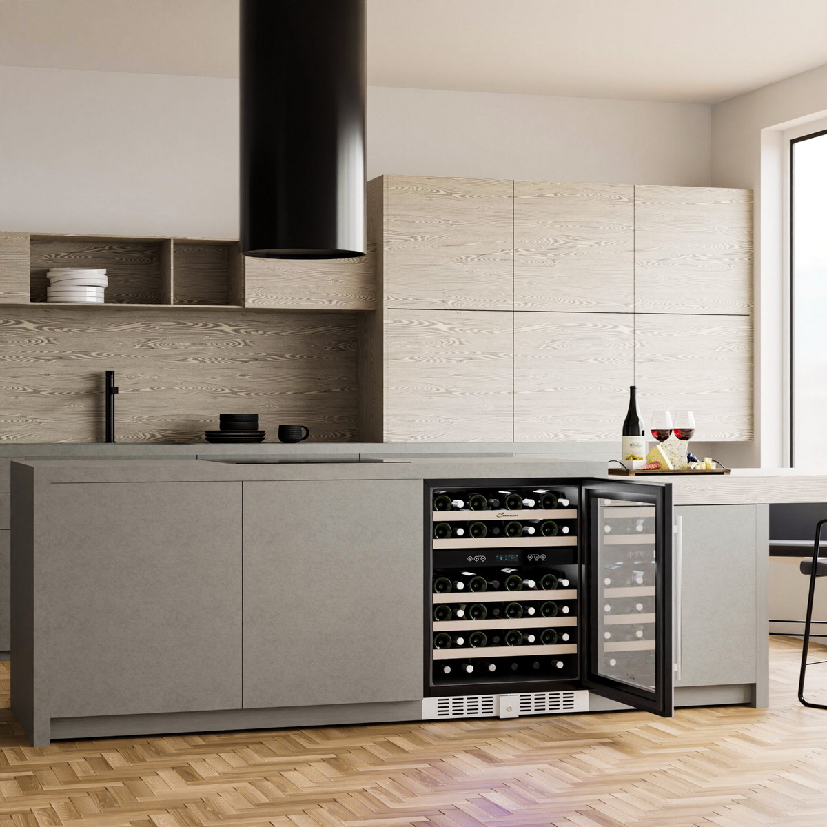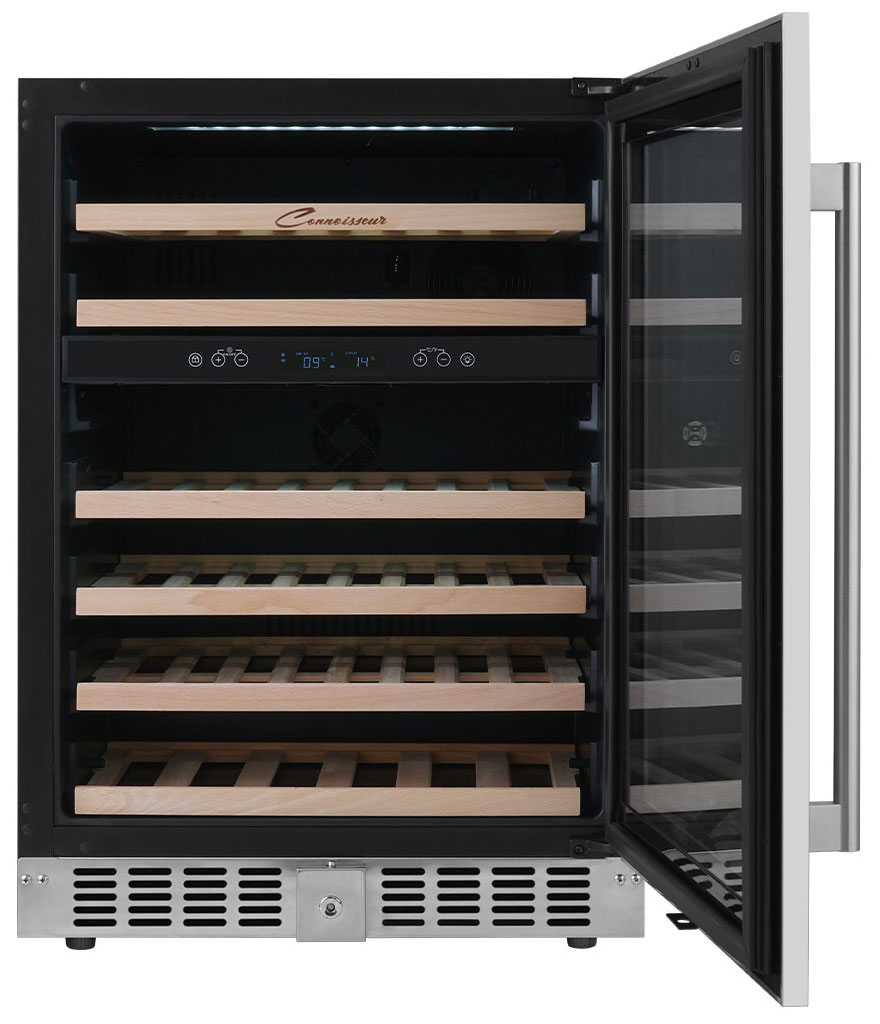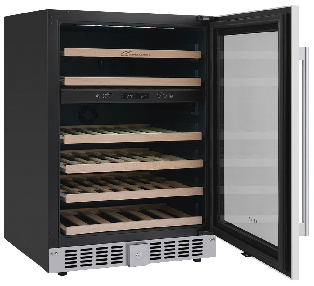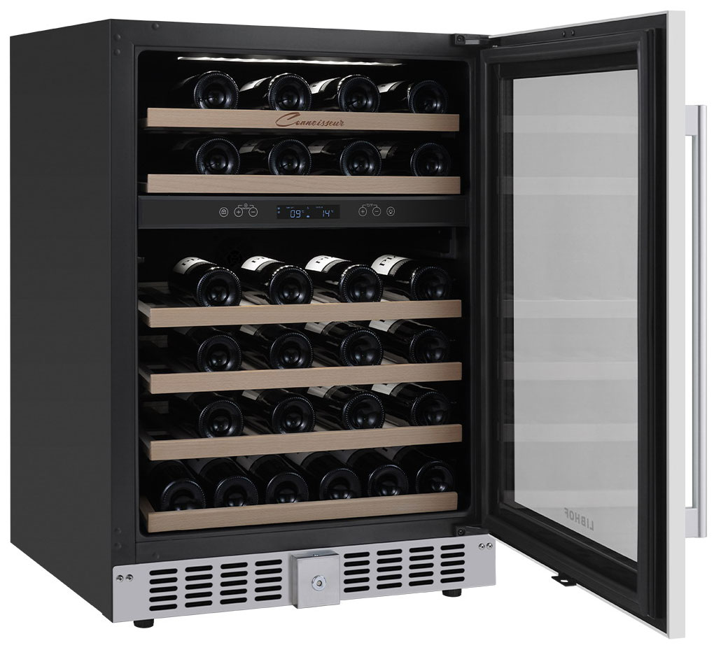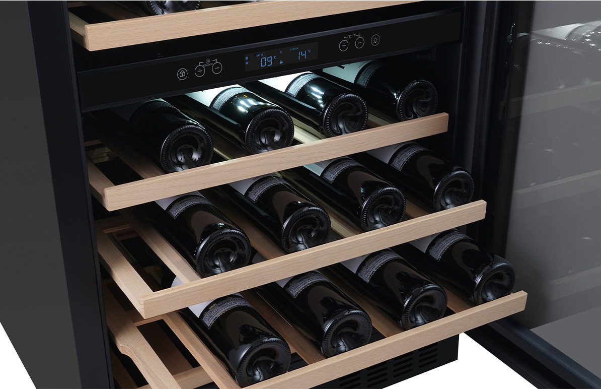 Комплектация: винный шкаф, инструкция, полки из массива бука, ручка, крепеж для ручки, угольный фильтр