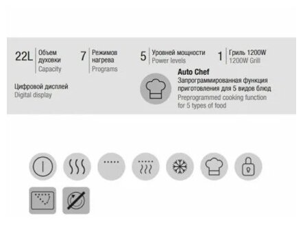 5 уровней мощности СВЧ, от 90 Вт до 850 Вт
