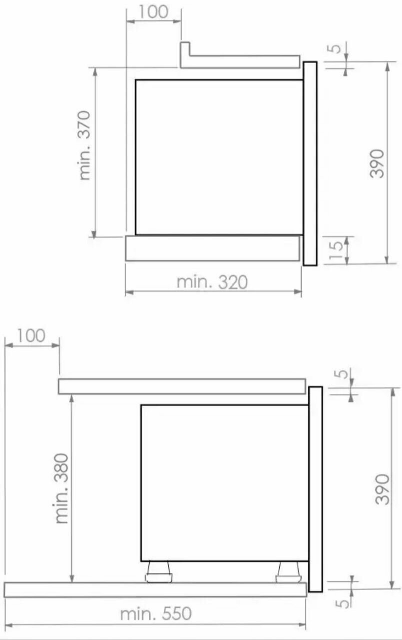 позволяющая добрать высоту до 45 см при установке духового шкафа