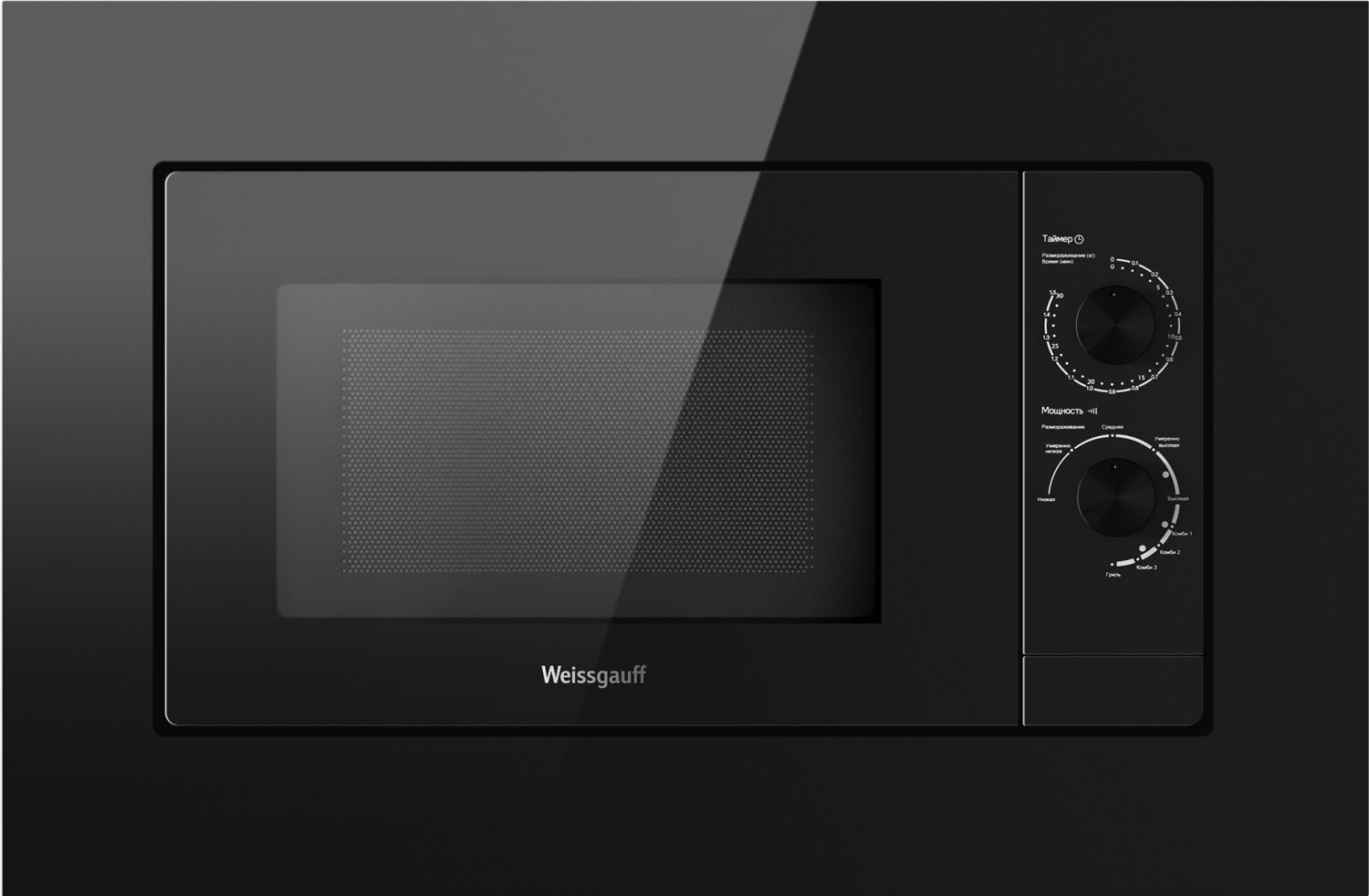 Встраиваемая микроволновая печь Weissgauff с объемом 20 литров, выполненная в черном закаленном стекле, равномерно разогревает еду при помощи поворотного стола, а также оснащена грилем с возможностью работы в комбинированном режиме!