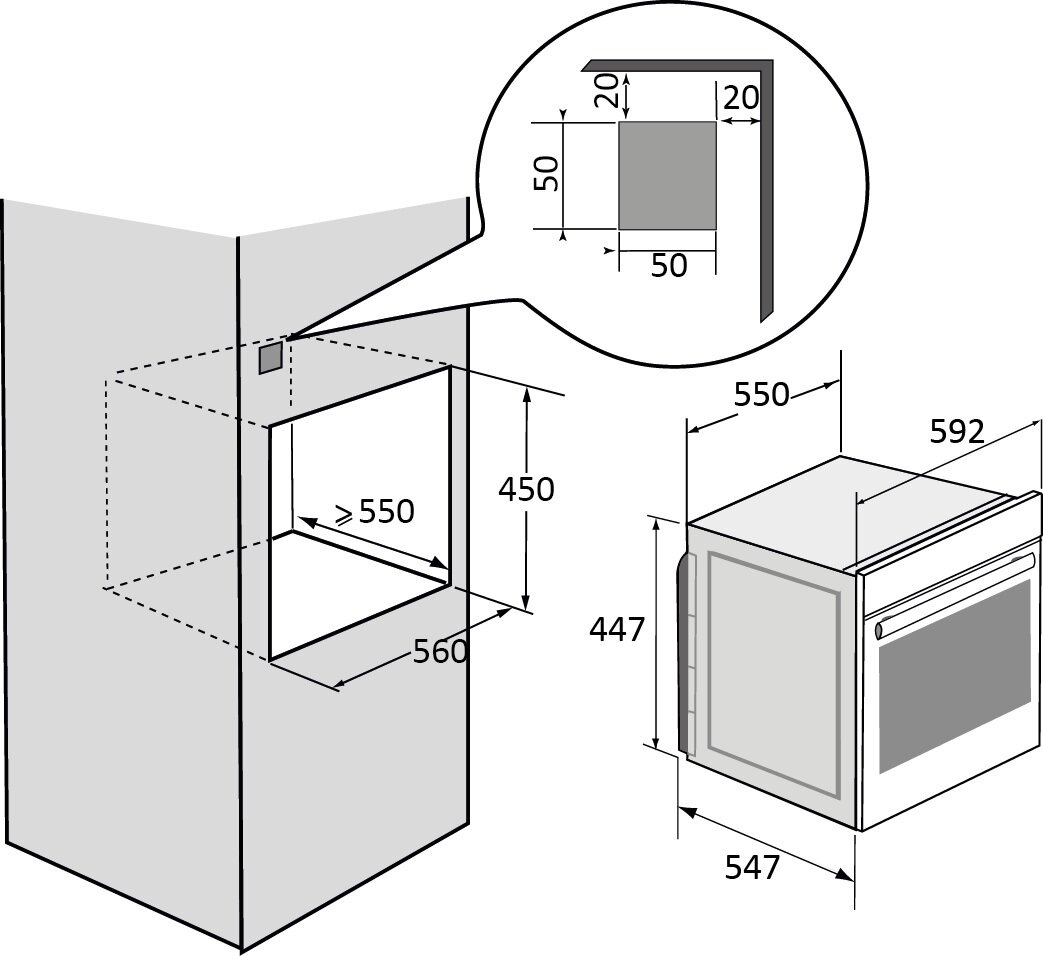 Размеры ниши для встраивания ВxШxГ (мм)