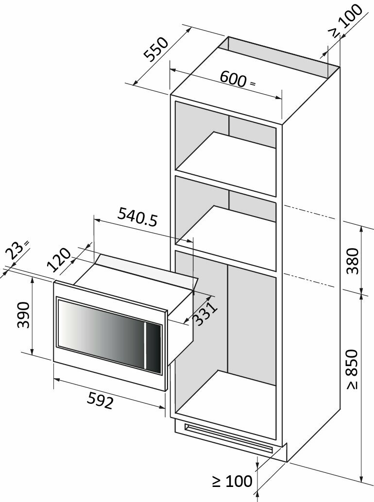 Размеры ниши для встраивания ВxШxГ (мм)380X560X550