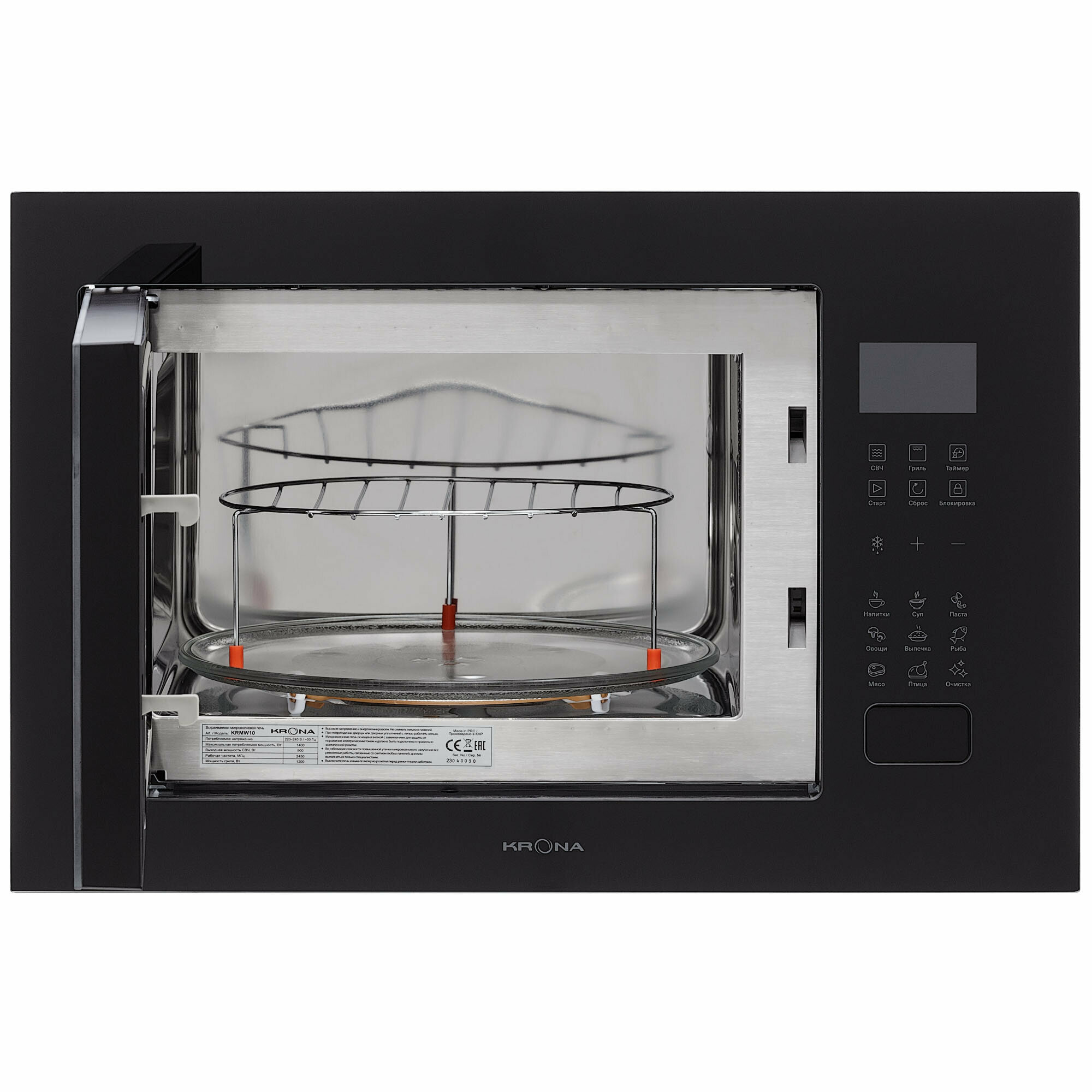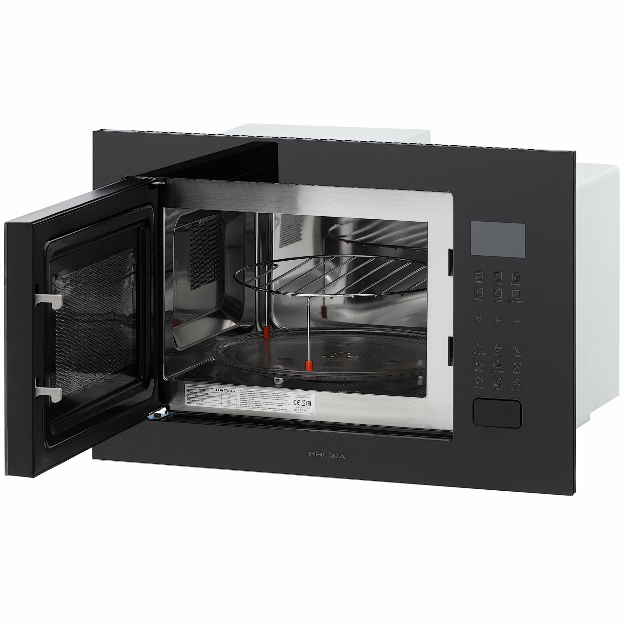 В комплект входит: Микроволновая печь -1шт, Стеклянный поворотный поддон - 1шт, Инструкция -1шт, Решетка для гриля -1шт; Установочный комплект - 1шт