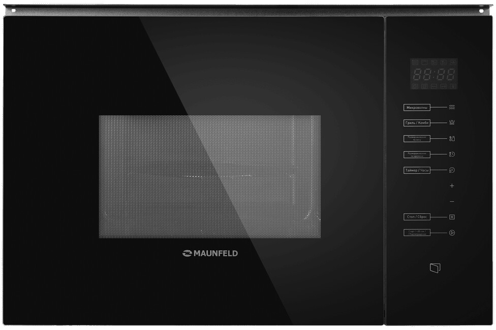 Микроволновая печь MAUNFELD комбинированного типа. Можно использовать только микроволны, только гриль или и то, и другое вместе. В СВЧ можно размораживать продукты по весу и времени. Мыть прибор вручную необязательно, для этого есть система очистки паром с помощью микроволн.