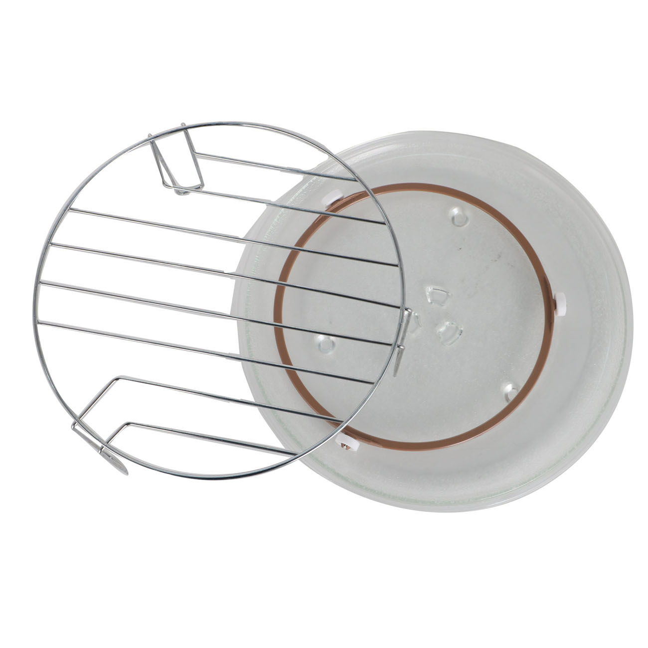 Внутренняя поверхность из нержавеющей стали не ржавеет, не впитывает запахи, устойчива к воздействию высокой температуры и влажности, моющих средств. Диаметр поворотного столика — 27 см. Для дополнительного удобства предусмотрена подсветка. Вес прибора — 14 кг.