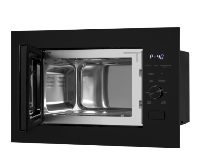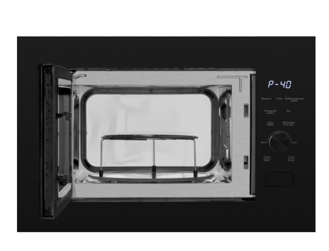 Встраиваемая микроволновая печь Weissgauff с объемом 25 литров, выполненная в черном цвете, равномерно разогревает еду при помощи поворотного стола, а также оснащена грилем с возможностью работы в комбинированном режиме и набором программ автоменю!