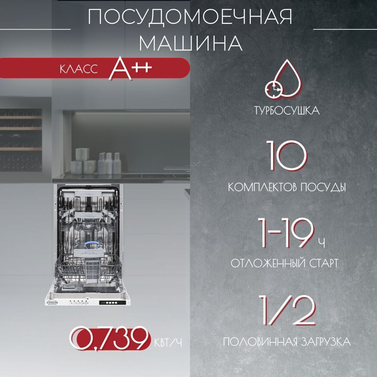 Энергопотребление за 1 цикл: 0,739 кВт/ч
