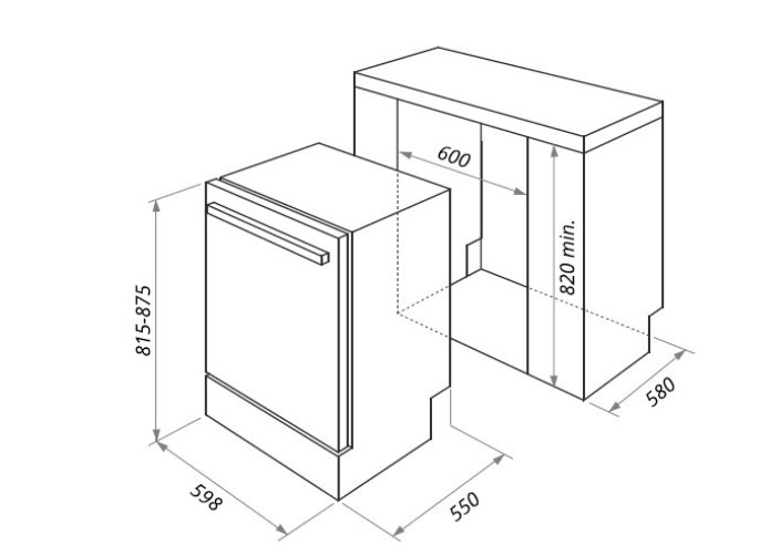 Глубина для встраивания 580 мм