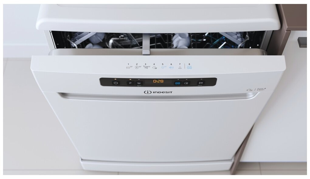 Особенности конструкции: внутренняя поверхность из нержавеющей стали, дисплей, регулируемая по высоте корзина для посуды