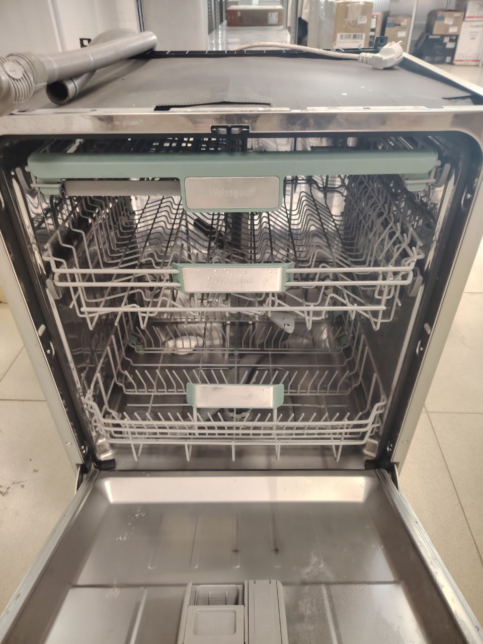 Полноразмерная встраиваемая и большая посудомоечная машина 60 см Weissgauff, рассчитанная на 14 комплектов посуды, не только отлично будет смотреться на вашей кухне, но и обеспечит идеальный результат: 3 корзины позволят расположить посуду оптимальным образом для достижения наилучшего качества мытья, луч на полу дополнит прекрасный набор возможностей этой модели, а наличие автопрограммы позволит машине самостоятельно определить количество посуды, степень загрязнения, время мойки, а также необходимую температуру.