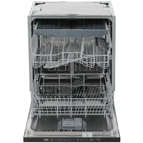 Встраиваемая посудомоечная машина Beko BDIN15560 с 3 корзинами, отдельными полками для чашек и складными держателями для тарелок вмещает 15 комплектов. Верхний разбрызгиватель улучшает качество мойки при полной загрузке камеры. ПММ оповещает об окончании программы звуковым сигналом и лучом на полу. Автооткрывание двери для сушки посуды сокращает потребление энергии.
