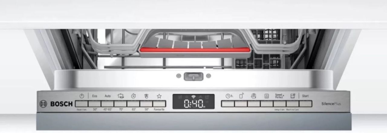 Машина посудомоечная встраиваемая Bosch SMV 4ITX11E — модель с индикатором «Луч на полу», который проецируется на пол в виде светящейся точки и гаснет после завершения мытья. Прибор удобен благодаря системе корзин VarioFleх, верхний ящик регулируется по высоте благодаря 3-х ступенчатой технологии Rackmatic. Опция Экстра-сушка позволяет равномерно высушить посуду из различных материалов, температура и продолжительность высыхания которых отличается.