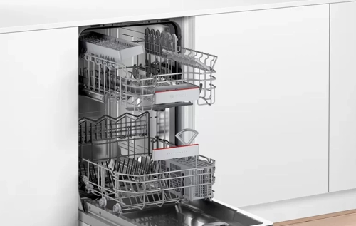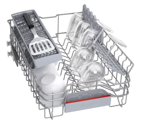 Посудомоечная машина — встраиваемая модель с инверторным мотором. Красный индикатор InfoLight проецируется на пол и показывает ход работы прибора. Благодаря системе AquaStop прибор имеет гарантию на случай протечки. Технология Home Connect позволяет запускать мойку прямо со смартфона, а также проводить удаленную диагностику. Автоматическая программа обеспечивает оптимальный результат при уменьшении расхода воды и электричества. Опция IntensivZone позволяет одновременно мыть сильно загрязненные кастрюли в нижней корзине, и хрупкие бокалы — в верхней. Качество отмывания будет превосходным за счет распределения воды и давления в рабочей камере.