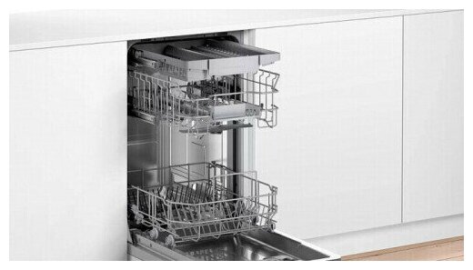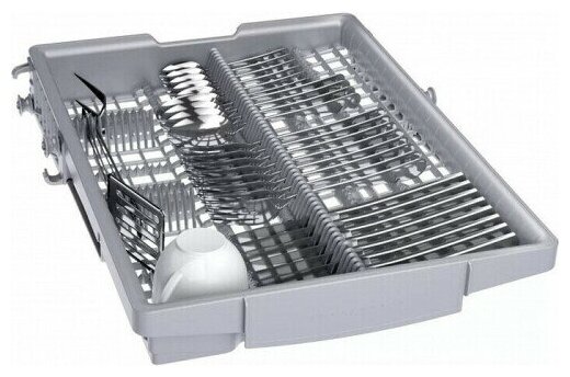Основные характеристики Производитель: BoschКласс энергопотребления (новая маркировка): FКласс мойки: А Класс сушки: А Количество программ: 6Количество температурных режимов: 3Цвет: белый, панель управления - нержавеющая сталь Управление: электронное Вместимость (кол-во комплектов): 10Расход воды, л: 9,5Уровень шума, дБ: 46Способ установки: полновстраиваемая Высота, см: 81,5Ширина, см: 44,8Глубина, см: 55ОснащениеДисплей: естьЗащита от детей: нет Сушка посуды: есть Возможность подключения к горячей воде: есть Защита от протечек и перелива (аквастоп): есть Самоочищающийся фильтр: есть Контроль чистоты воды (аквасенсор): есть Автоматика "3 в 1" (для таблетированных моющих средств): есть Возможность половинной загрузки: нет данных Регулировка высоты верхней корзины: есть Таймер: есть Подсветка: нет Индикатор наличия соли/ополаскивателя: нет данных Индикатор хода программы (луч): есть, InfoLightПрограммыДополнительно: Сушка Extra: дополнительная функция, позволяющая полностью высушить трудно сохнущую посуду. Предварительное полоскание (замачивание): нет Автопрограмма: есть Интенсивная мойка: есть Экономичная программа: есть Быстрая экспресс-программа: есть Деликатная мойка (хрупкая посуда): нет Ночная мойка (бесшумная): есть