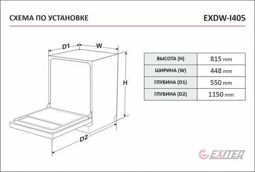 Встраиваемая посудомоечная машина EXITEQ EXDW-I405 оборудована 2 вместительными корзинами, позволяющими выполнять очистку за цикл 9 комплектов посуды. Модель имеет 5 программ работы, среди которых найдется подходящая для любых кухонных и столовых принадлежностей. Встраиваемая посудомоечная машина EXITEQ EXDW-I405 целиком защищена от протечек, что делает ее использование безопасной. Метод конденсационной сушки отвечает за то, что посуда будет не только чистой, но и сухой, без разводов и капель воды.