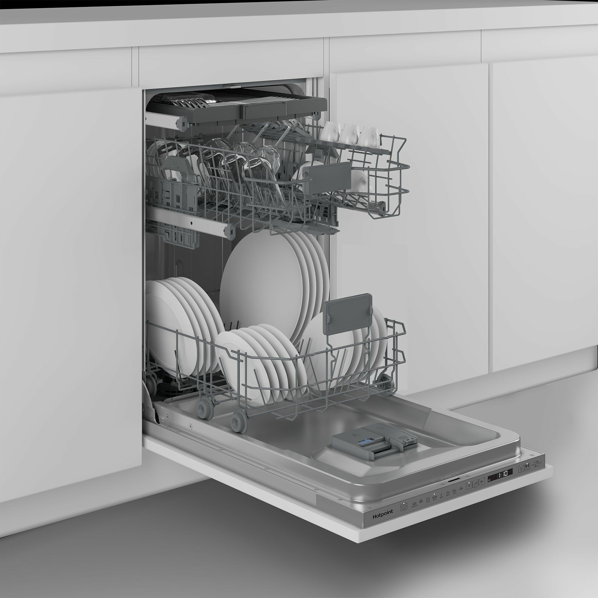 Индикация режима работы; Неполная загрузка; Складные держатели для тарелок; Лоток для столовых приборов; Самодиагностика неисправностей
