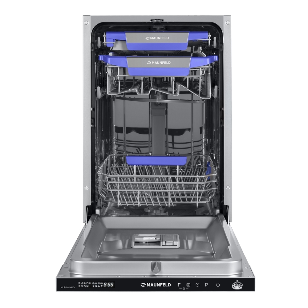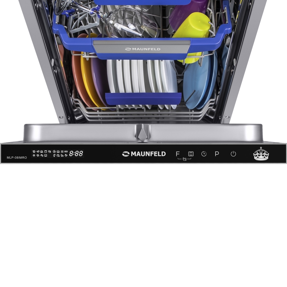 Встраиваемая посудомоечная машина дополнена технологией защиты от протечек, которая в автоматическом режиме остановит ее работу, если поддон устройства заполнился жидкостью. Благодаря специальным индикаторам вы оперативно узнаете, что пришло время наполнить соответствующие резервуары моющими средствами. Встроенный дисплей придется как нельзя кстати для точного и быстрого выбора параметров.
