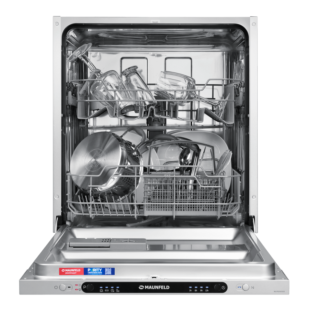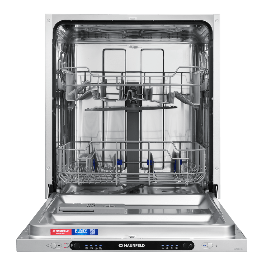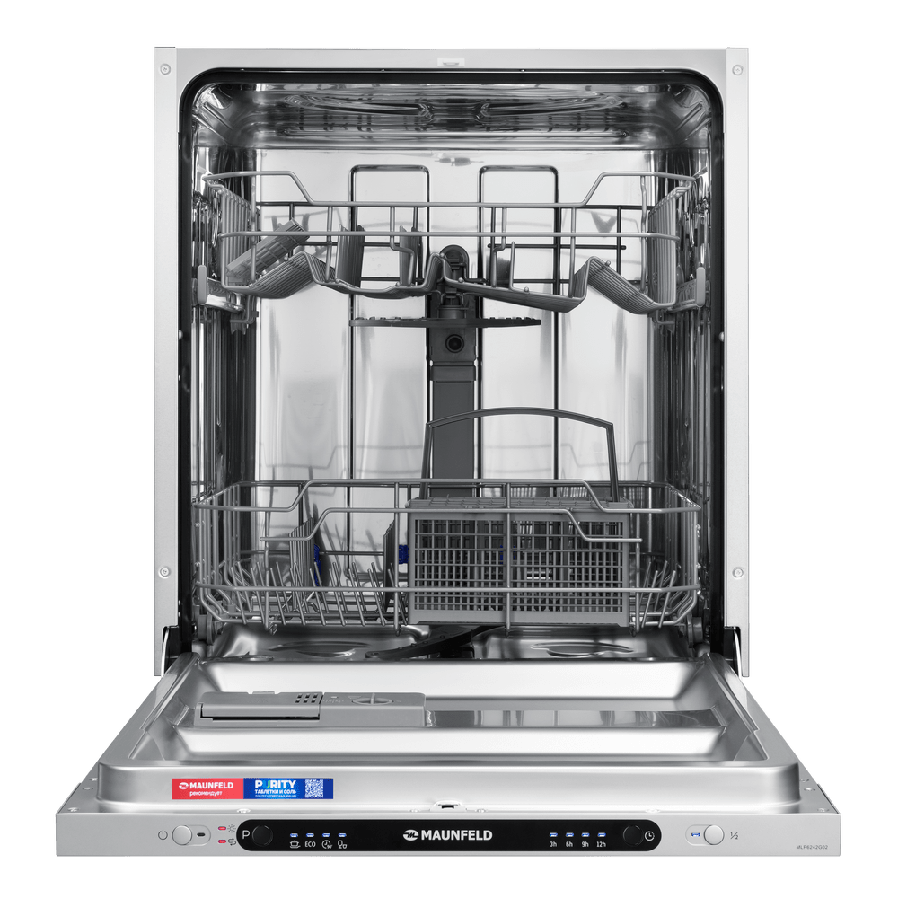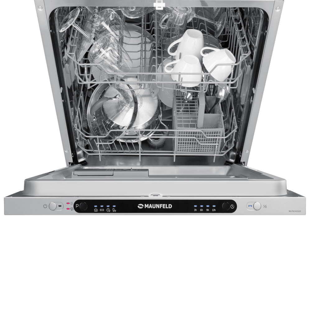 MAUNFELD MLP6242G02— полноразмерная встраиваемая посудомоечная машина, которая избавит вас от необходимости мыть посуду вручную . Вместимость — до 12 комплектов посуды. За раз можно помыть сразу много посуды — это оценят большие семьи и те, кто любит готовить или часто принимает гостей.