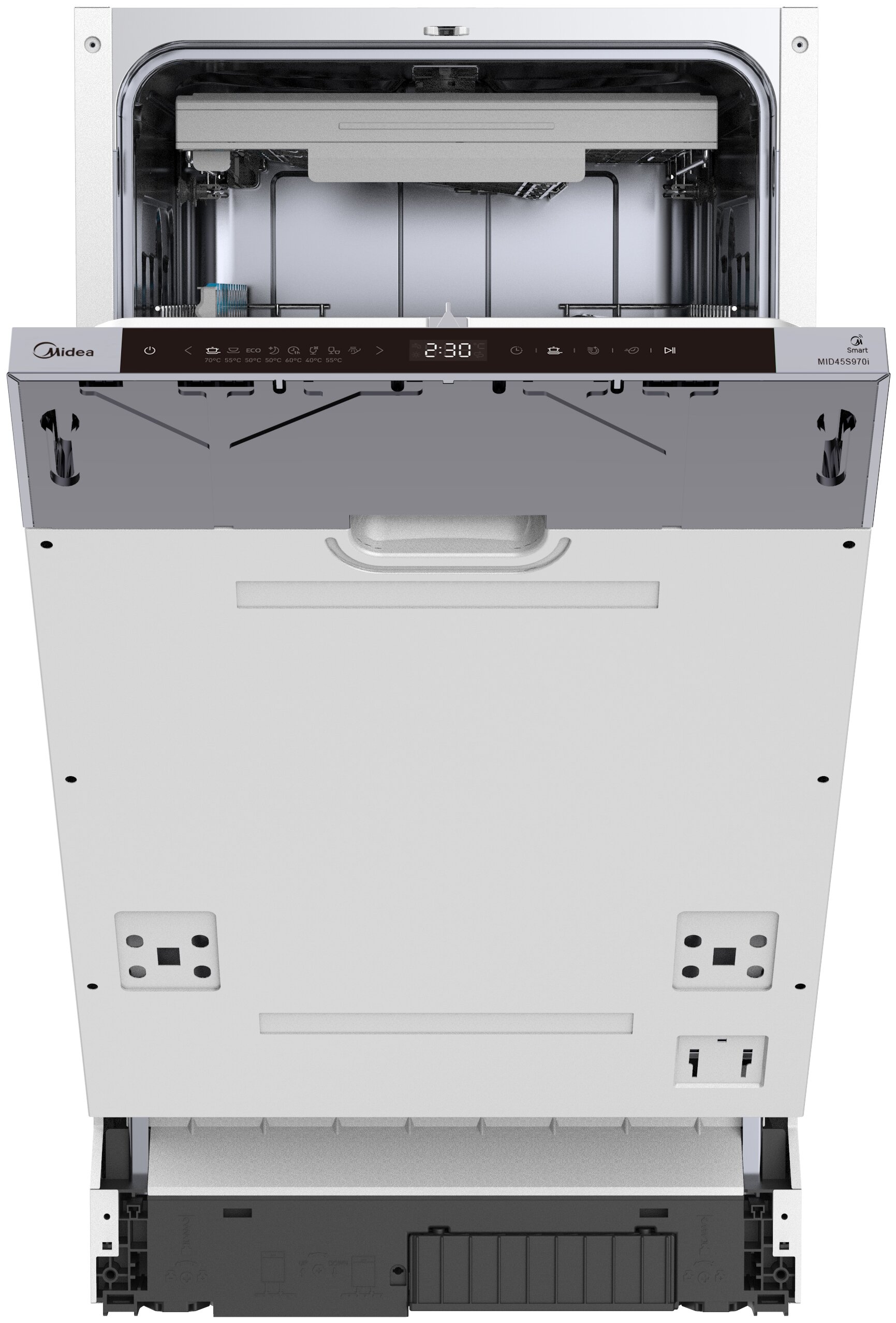 дисплей, регулируемая по высоте корзина для посуды, автоматическое открывание дверцы по завершении цикла, таймер отсрочки