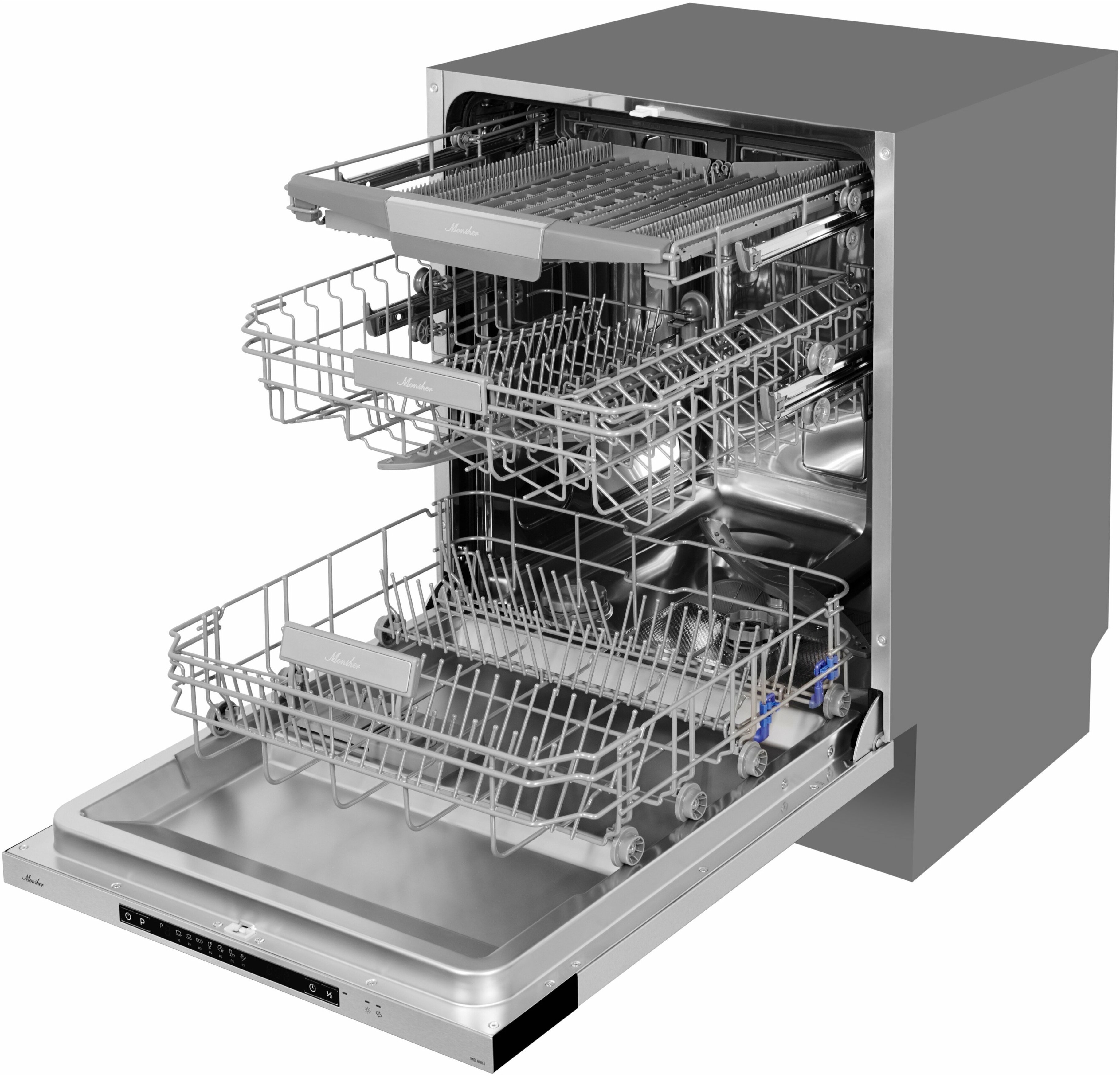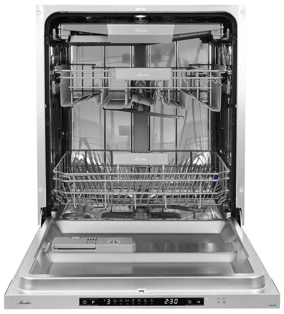 регулируемая по высоте верхняя корзина; полки для чашек; размер ниши для встраивания (ВхШхГ) 820×600×580 мм