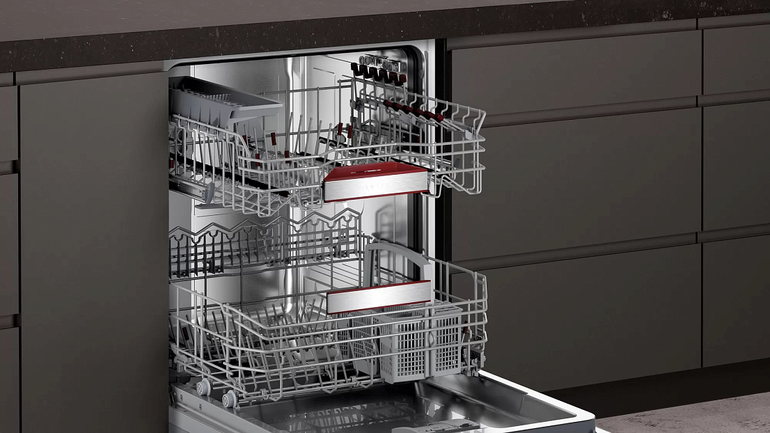Встраиваемая посудомоечная машина Neff S197EB800E — это идеальное решение для тех, кто хочет максимально эффективно использовать пространство своей кухни и упростить быт. Эта модель обладает рядом преимуществ, которые делают ее одной из лучших на рынке. Так, стоит отметить ее компактный размер, позволяющий встроить технику даже в небольшие кухни. При этом вместимость составляет 13 комплектов посуды, что достаточно для семьи из 3-4 человек. Одним из главных преимуществ посудомоечной машины Нефф S197EB800E является ее экономичность. Класс энергопотребления А+++ гарантирует минимальный расход электроэнергии, что позволит существенно сэкономить на коммунальных платежах.