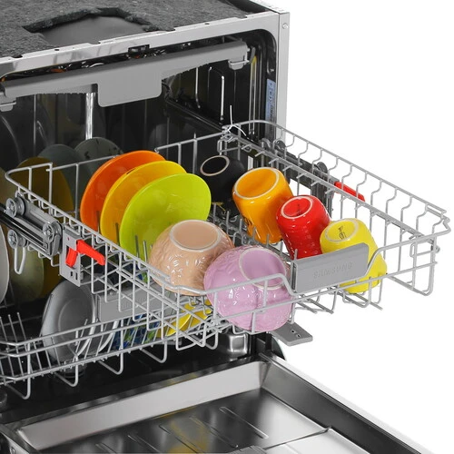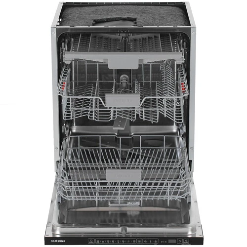Встраиваемая посудомоечная машина Samsung DW60R7050BB − удобное приспособление для ежедневного использования. Экономичность прибора обусловлена небольшим расходом воды и хорошей вместимостью: за один цикл машина расходует 9.9 л воды, поддерживая возможность загрузки до 14 комплектов. Модель использует защиту от протечек Aquastop, которая отключает автоматически подачу воды при возникновении срыва/разрыва шланга машины. Запуск цикла мытья может быть в любое время за счет поддержки таймера, поддерживающего отсрочку включения.
