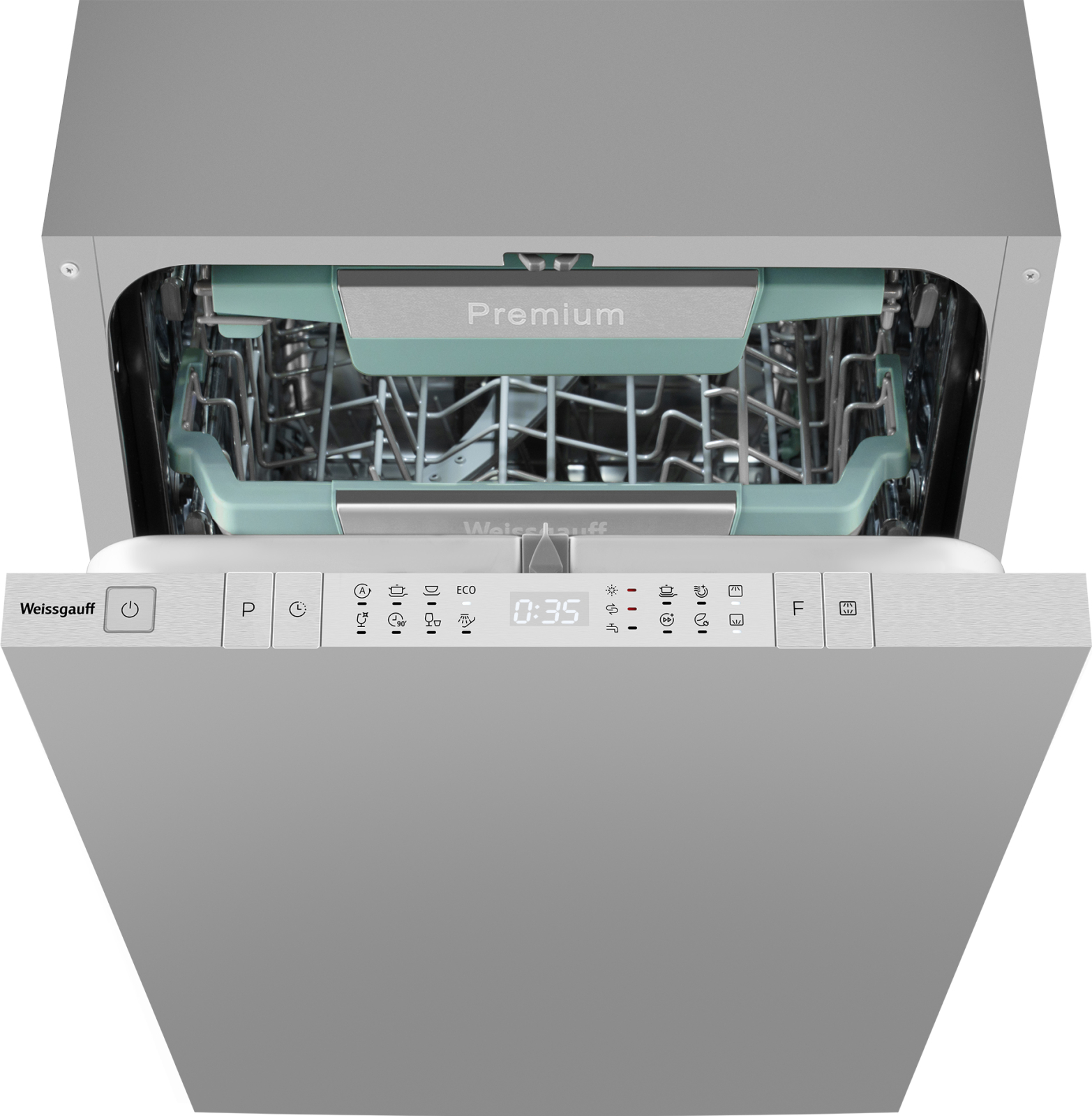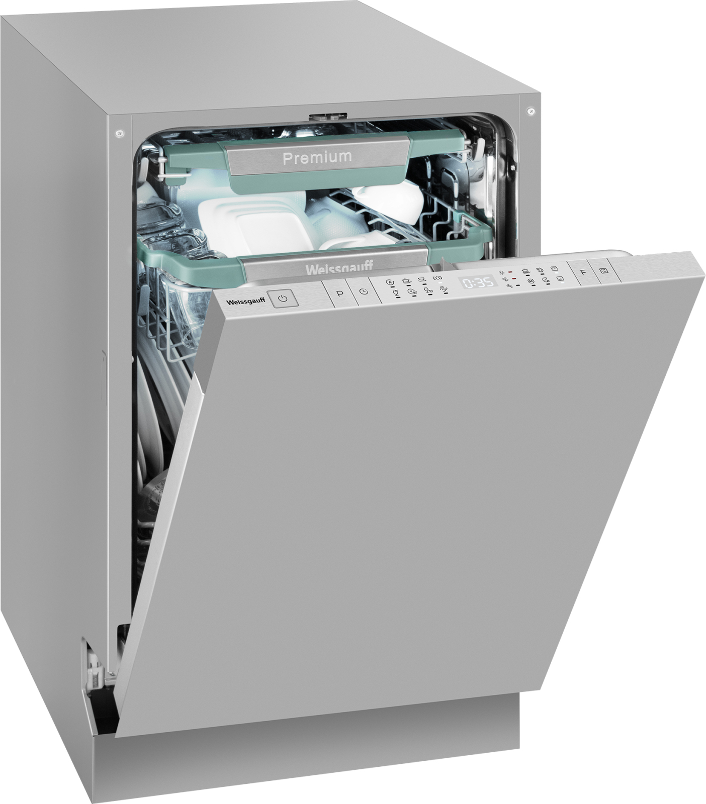 Встраиваемая посудомоечная машина с проекцией времени на полу, авто-открыванием и инвертором Weissgauff BDW 4151 Inverter Touch AutoOpen Timer Floor