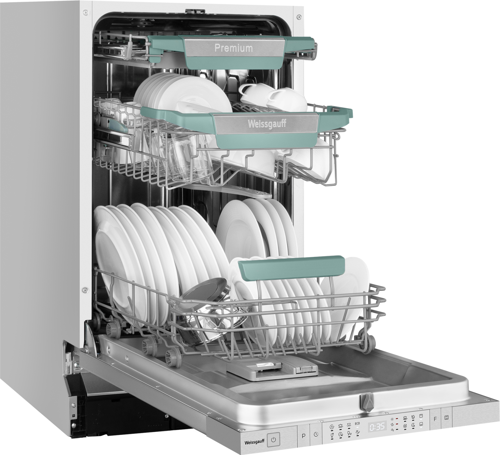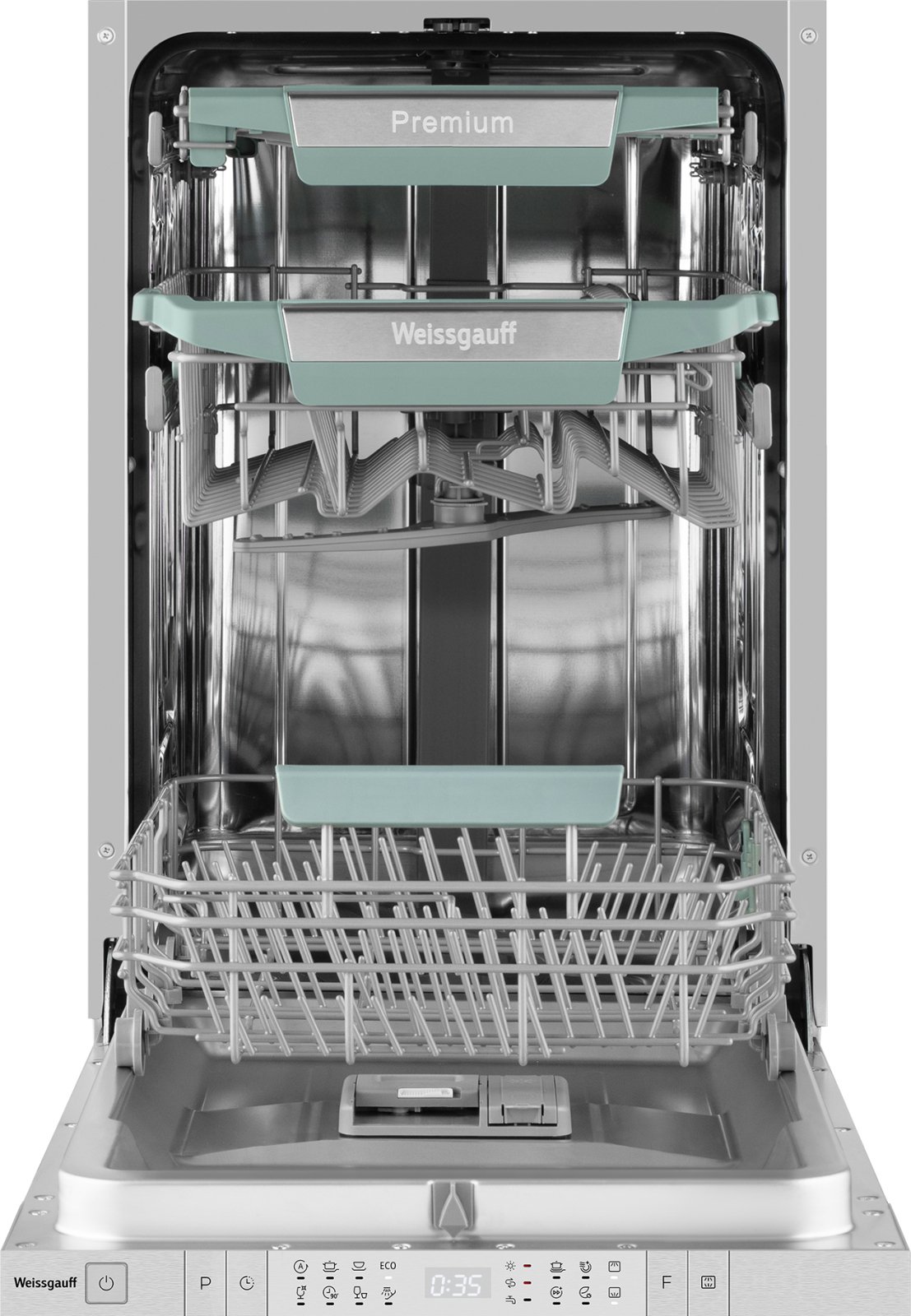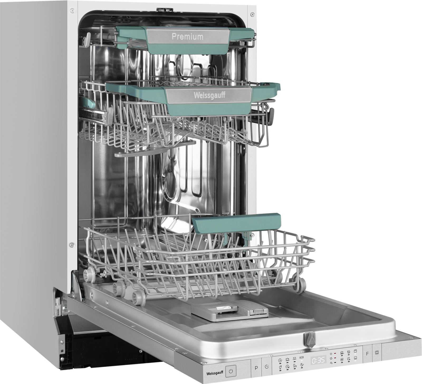 Узкая посудомоечная машина Weissgauff, оснащенная оснащенная проекцией времени до окончания цикла работы на полу, инверторным двигателем и функцией автоматического открытия дверцы, что делает данную модель не только эффективной, но и по-настоящему удобной в работе не только сэкономит место на вашей кухне, но и обеспечит идеальный результат: 3 корзины позволят расположить посуду оптимальным образом для достижения наилучшего качества мытья, а наличие 8 программ позволит подобрать оптимальный режим в зависимости от количества посуды и степени загрязнения.